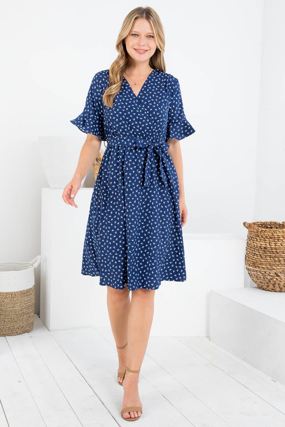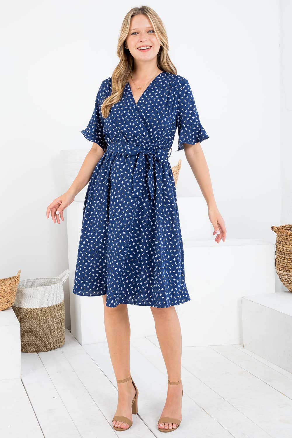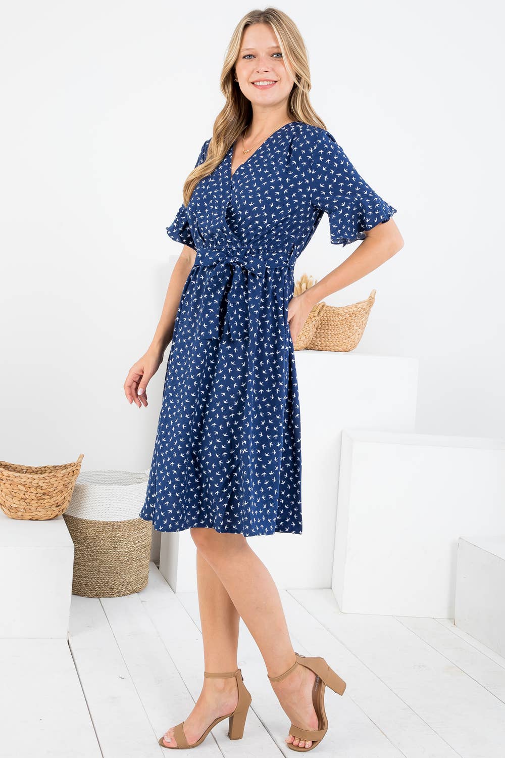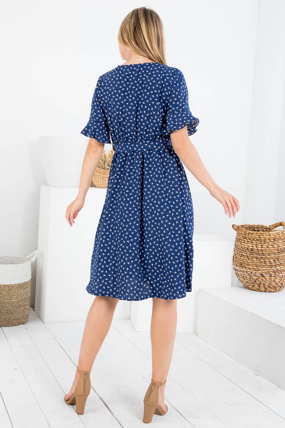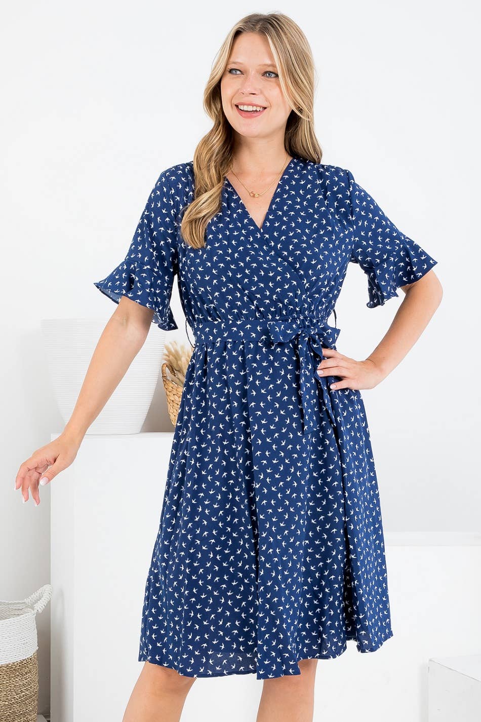 BIRD PRINT BELL SLEEVE MIDI DRESS