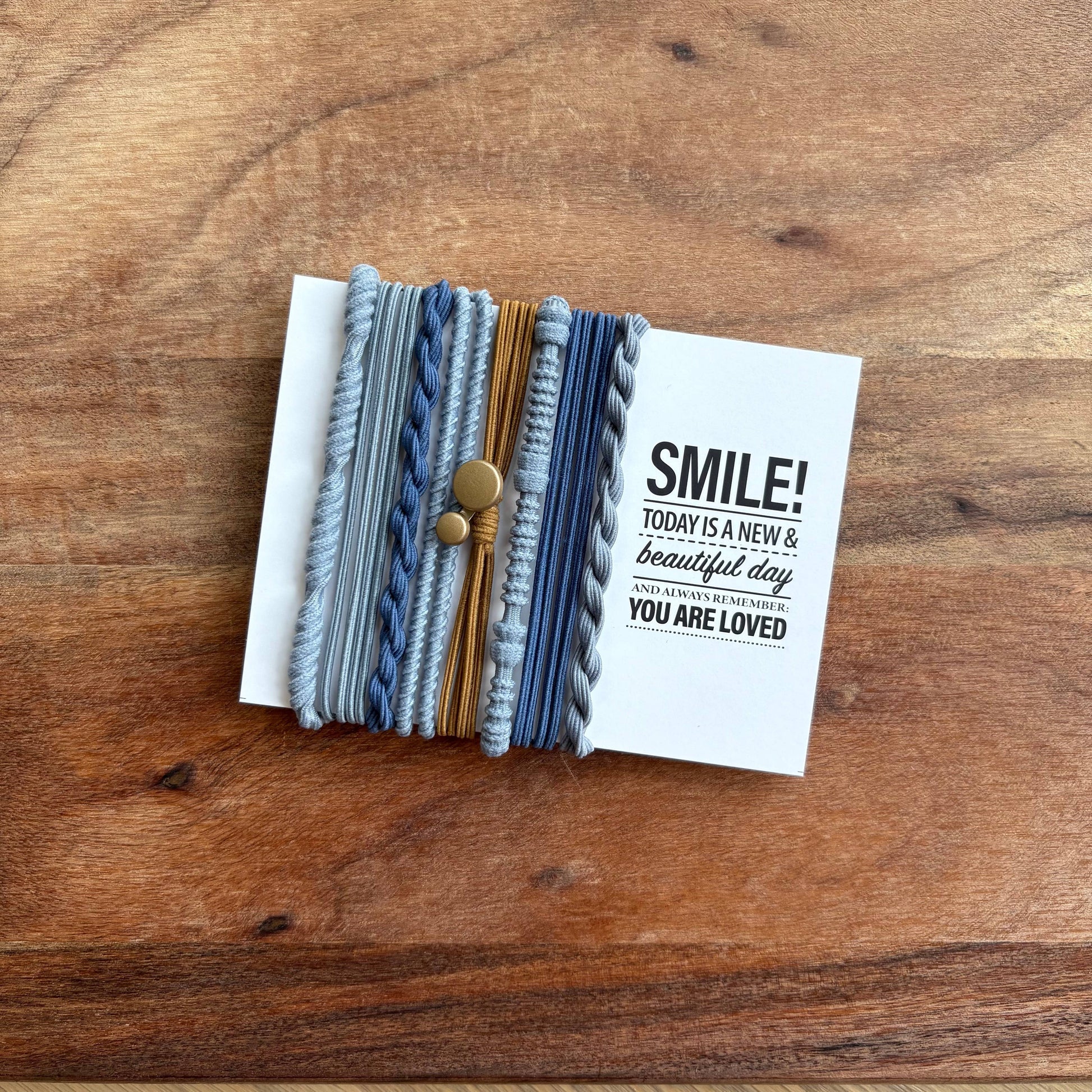 These Boho style hair ties are unique, decorative and oh so cute! Whether using your hair ties to hold up that luscious ponytail or stacking them on your wrist to add some outfit pizzazz, you can't go wrong. Hair ties come on a card complete with words of encouragement that will surely put a smile on her face!