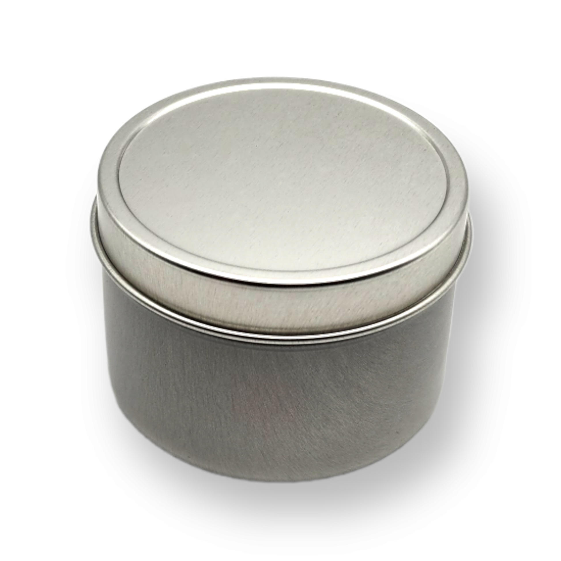 Tins can accommodate a 2" round label on the lid and a 1" tall side label (we recommend 1" tall by 2.652" wide)