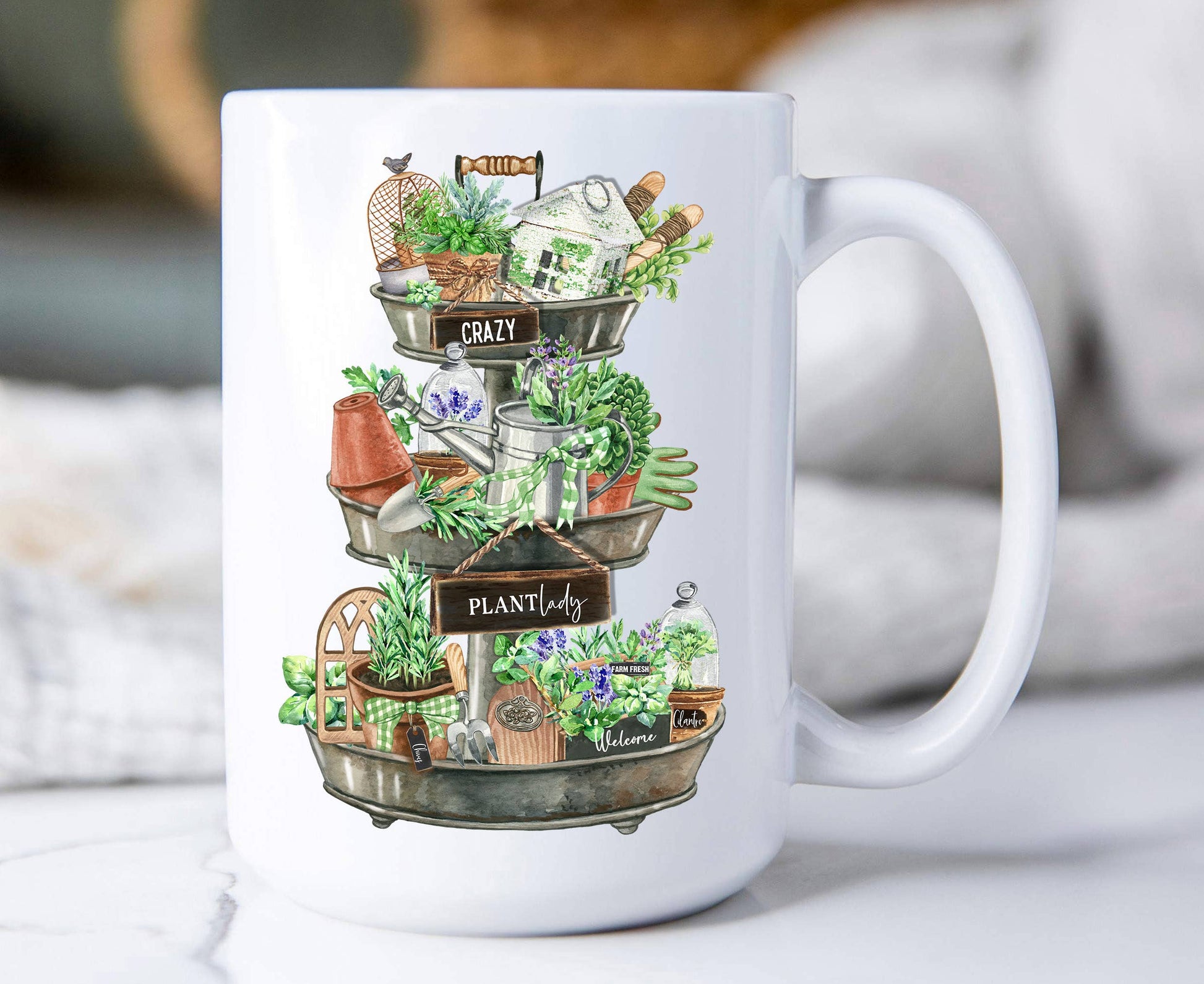 HOME: Coffee Mug Crazy Plant Lady 3 Tier Tray Herbs Coffee Mug