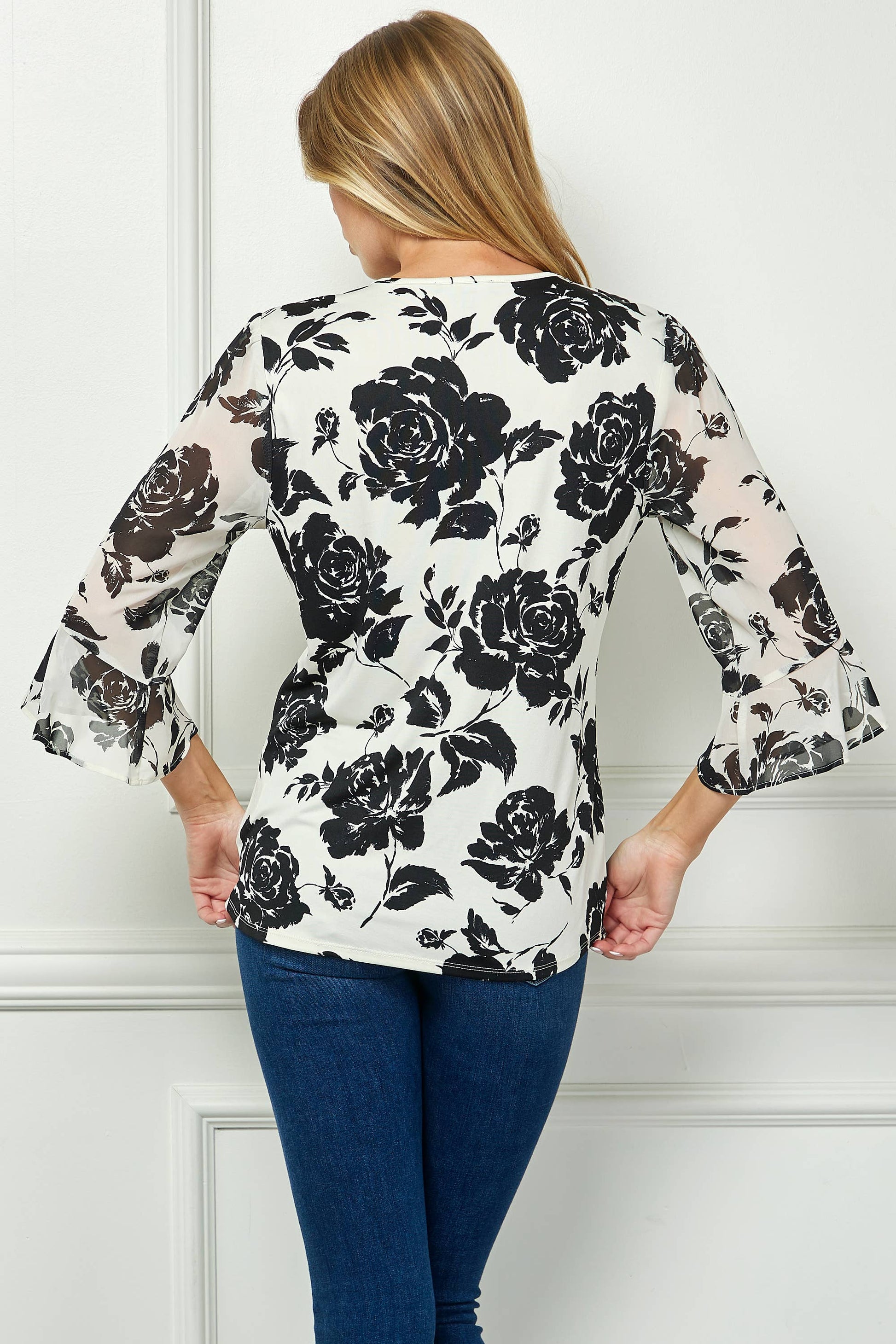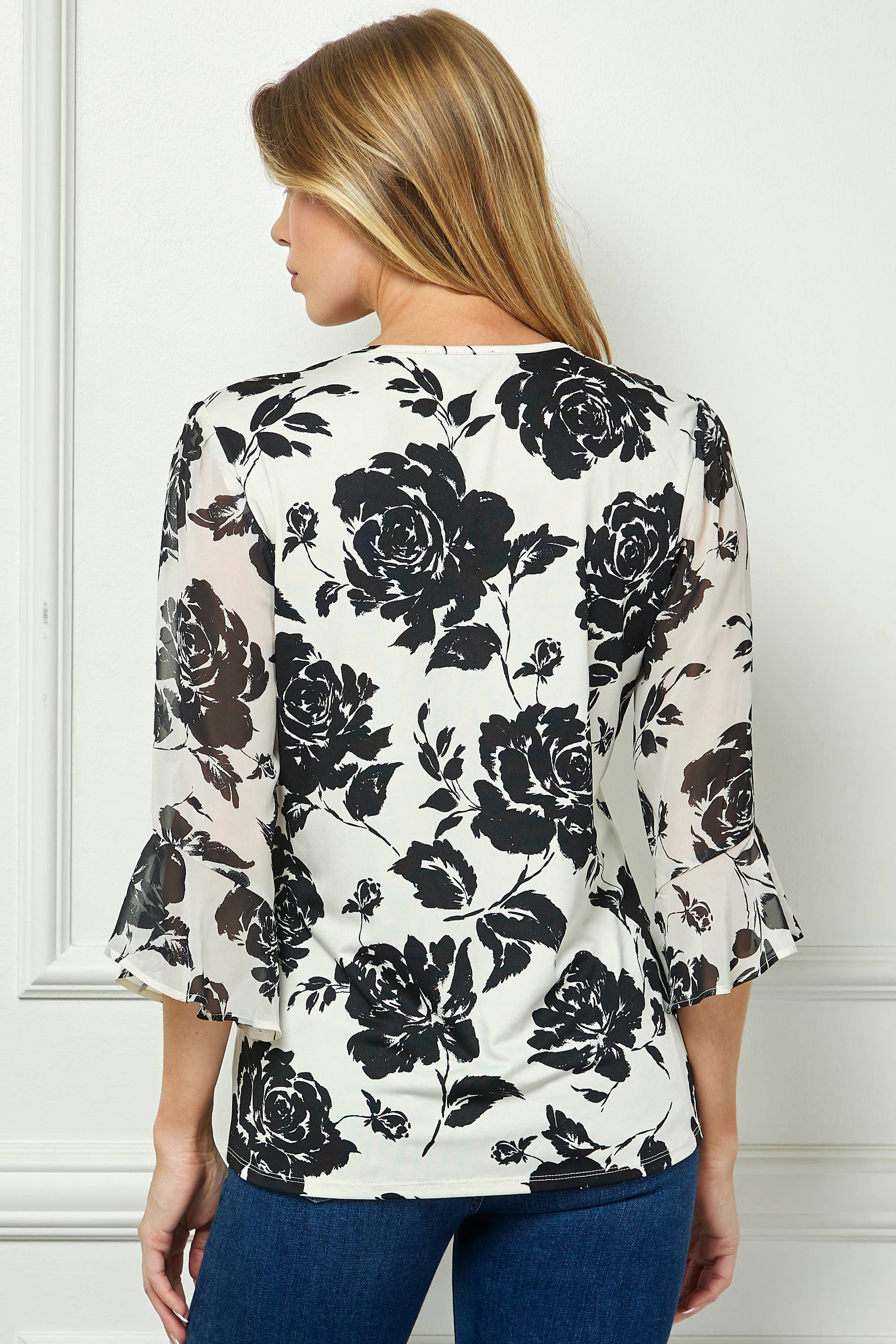 ALL TOPS: EVERBLOOM PLEATED BLOUSE W/ CHIFFON FLARE SLEEVES