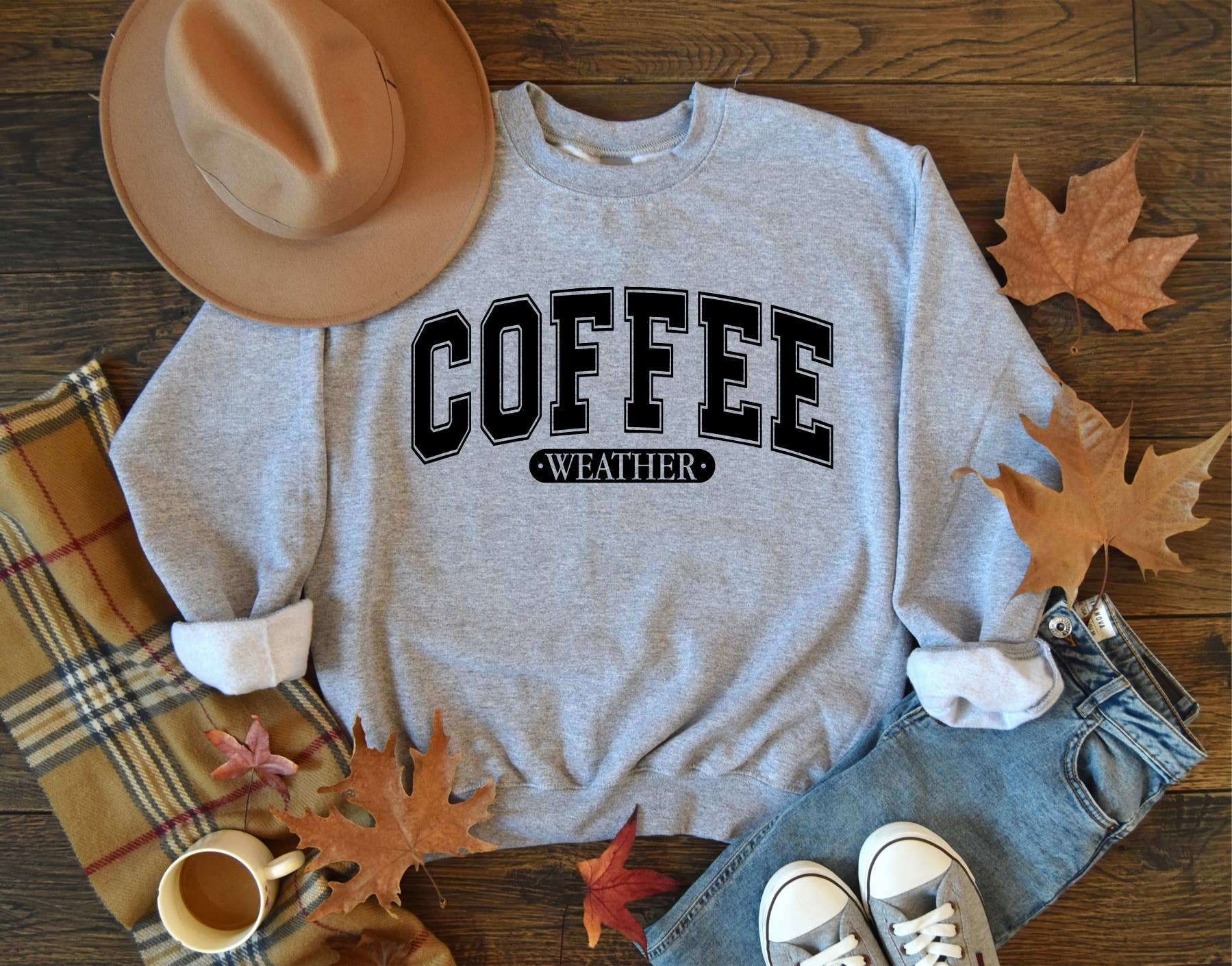 Get ready for crisp mornings and cozy moments with our Coffee Weather Graphic Sweatshirt in a versatile Ash gray. This fall favorite is perfect for coffee lovers and autumn enthusiasts alike! Featuring a soft, lived-in feel and a cozy graphic design, this is a must-have for pumpkin spice season, coffee runs, or lounging in cooler temps. Professionally screen printed on high-quality unisex tees for a flattering and relaxed fit.