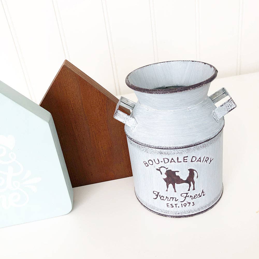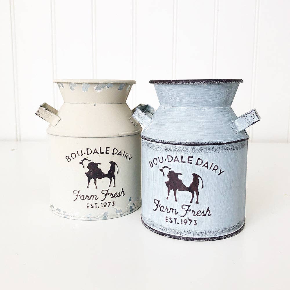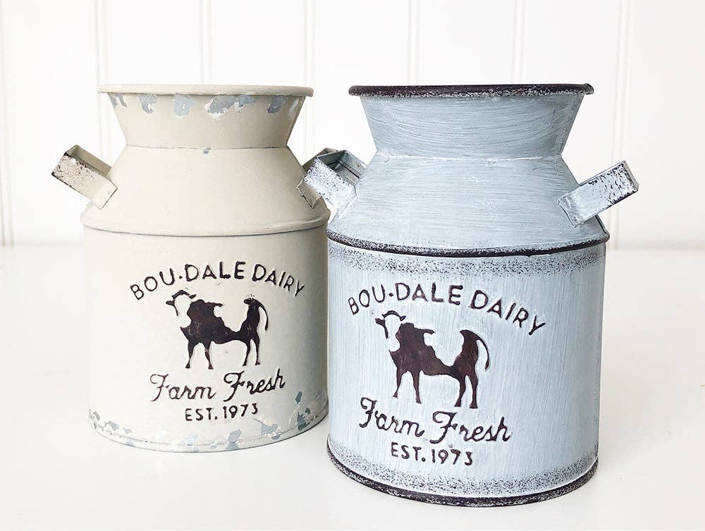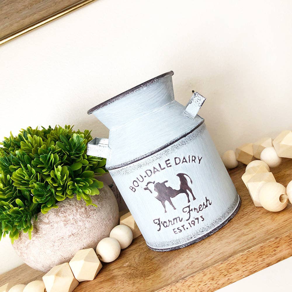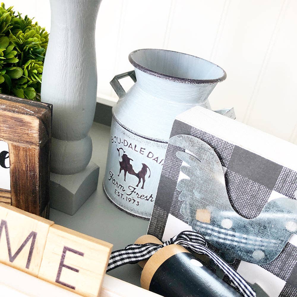 Decorative Milk Cans are perfect for decorating for the farmhouse look. They fit perfectly in any tiered tray or small space needing a little extra farmhouse flare. Use alone, or add real or Faux floral accents to brighten your space. (florals sold separately)