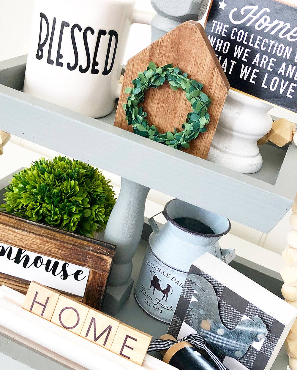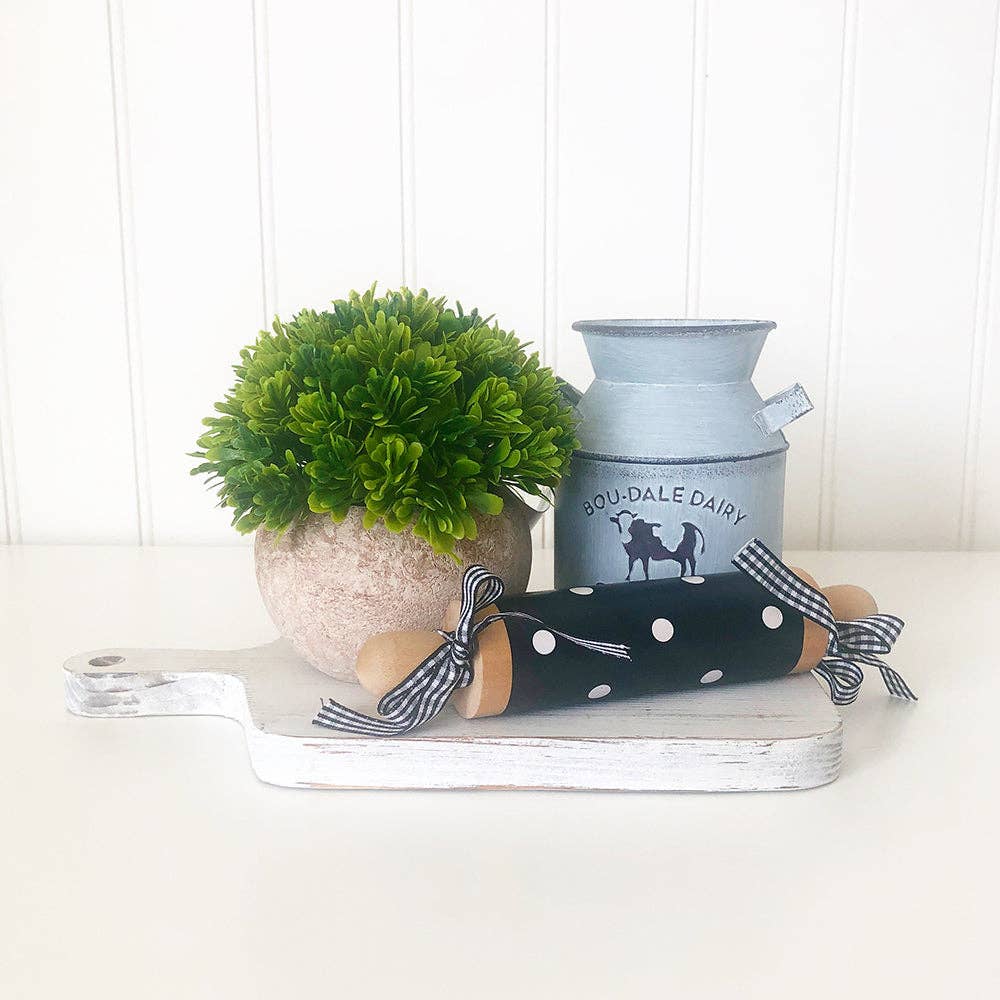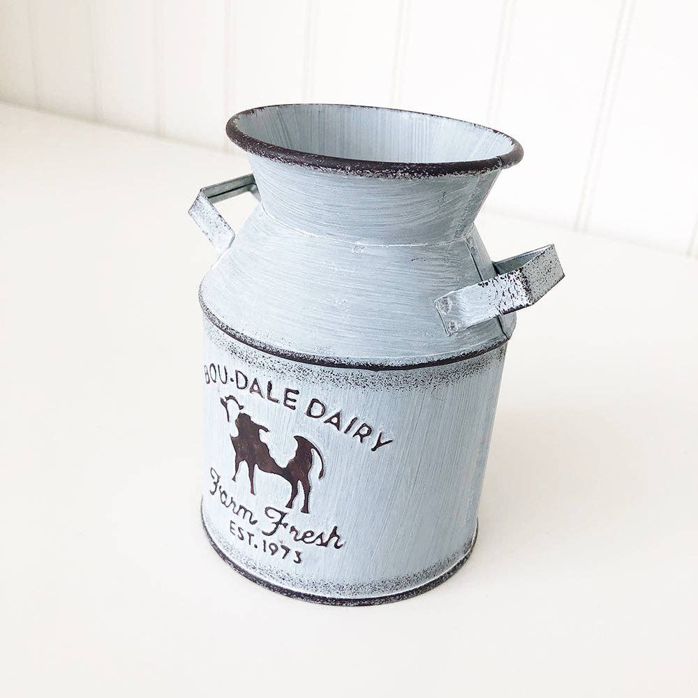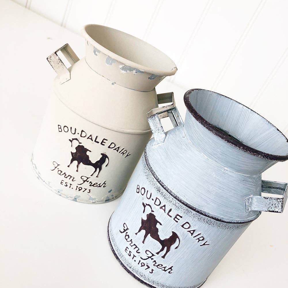 Decorative Milk Cans are perfect for decorating for the farmhouse look. They fit perfectly in any tiered tray or small space needing a little extra farmhouse flare. Use alone, or add real or Faux floral accents to brighten your space. (florals sold separately)
