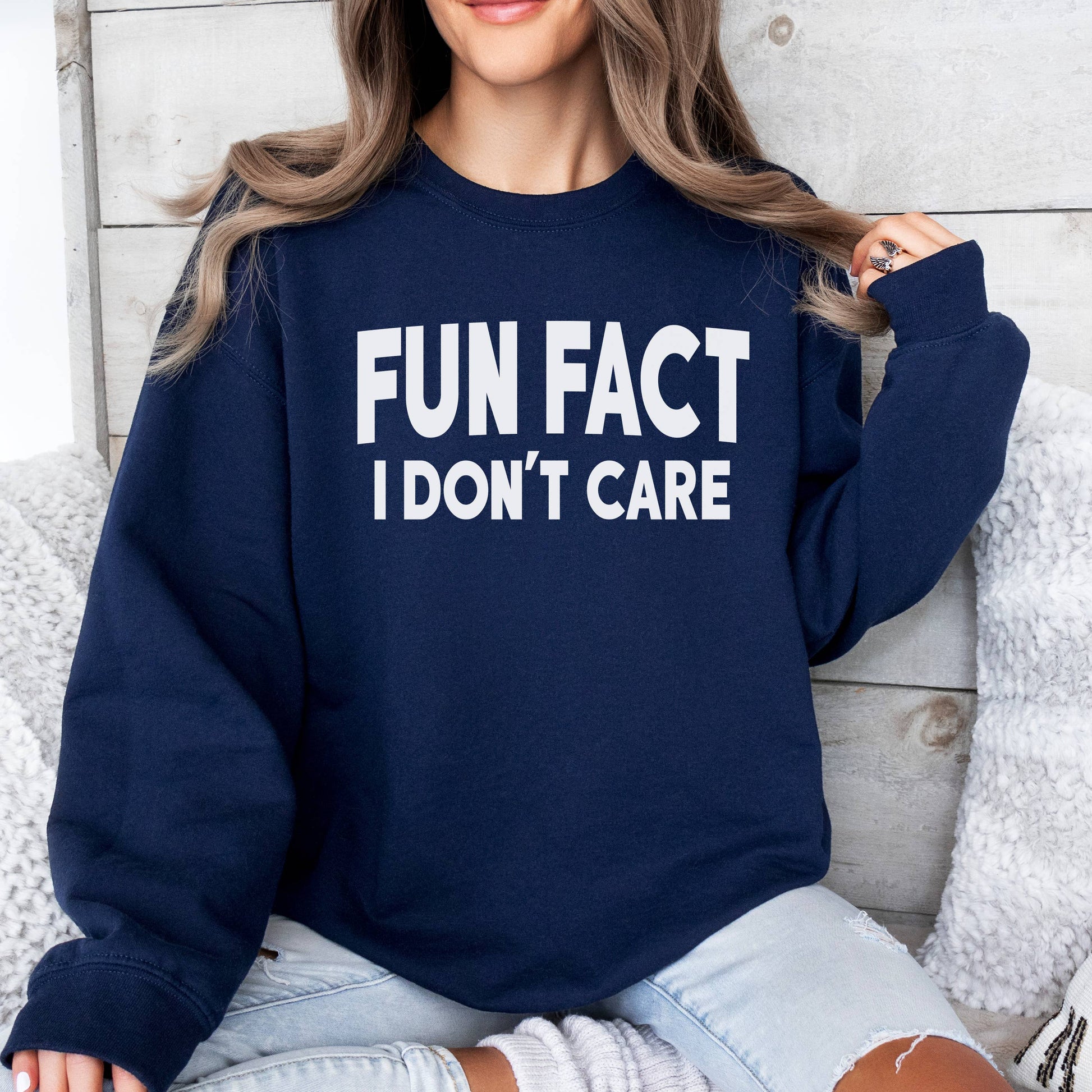 Show off your playful side with the Fun Fact I Don't Care Graphic Sweatshirt. Made for comfort and style, it’s ideal for casual days when you want to express your carefree attitude with a wink.