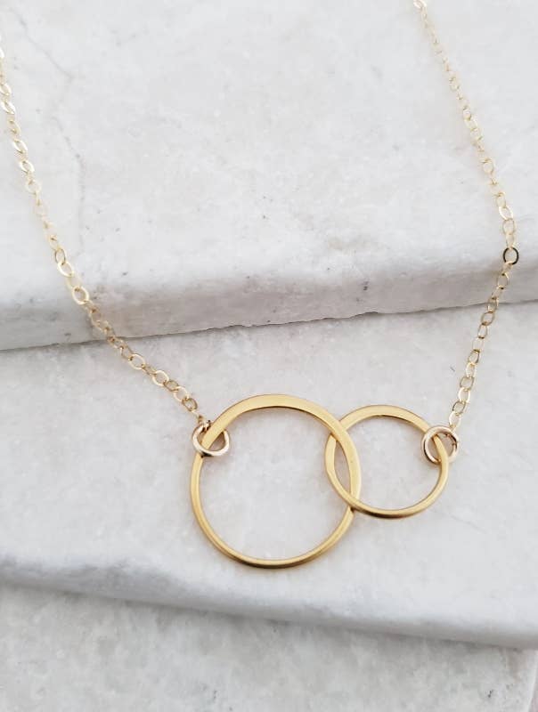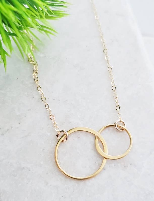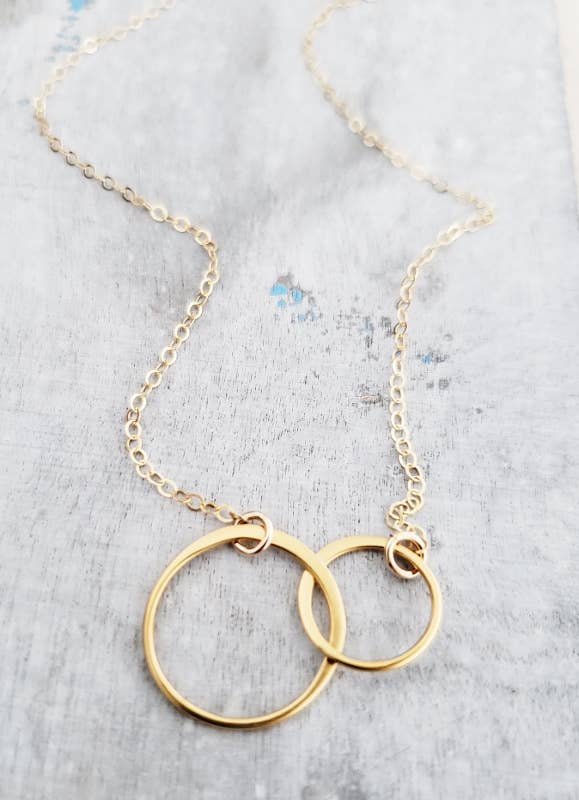 Sweet and Simple Necklace. These beautiful necklace with two intertwined circle links are made of gold over .925 sterling silver with delicate 16" 14K gold-filled cable chain with spring clasp. Wear it alone or mix and match with your favorite necklace.