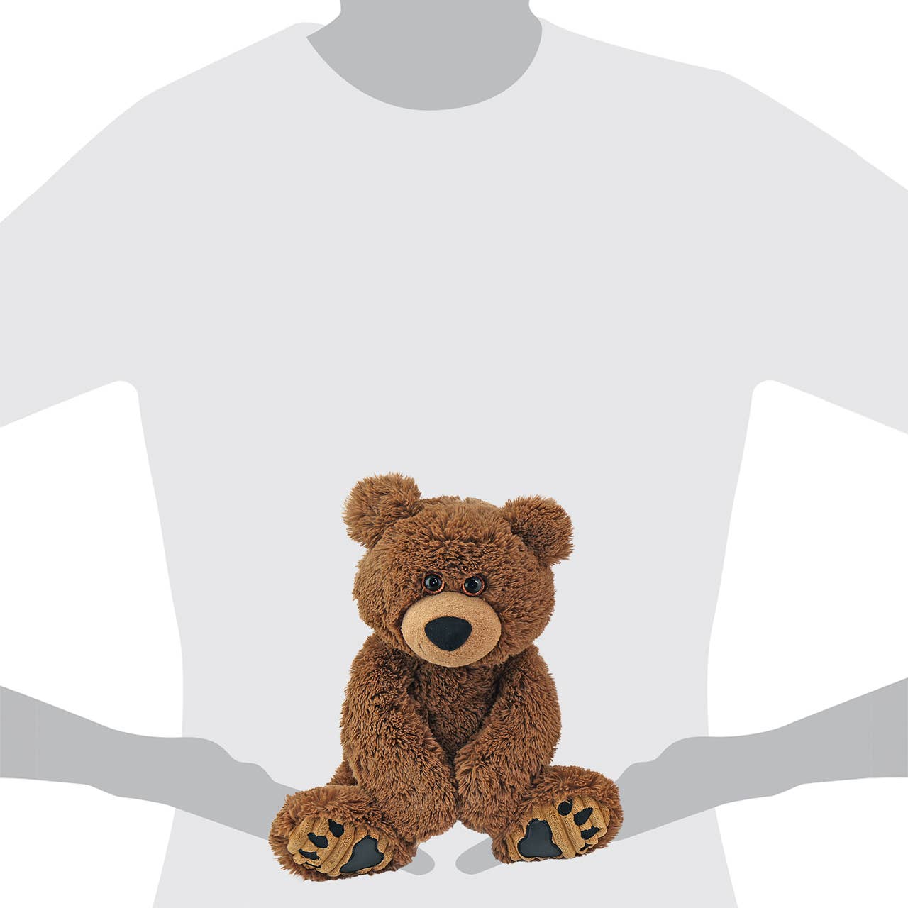 Grizzles is an adorable plush bear with soft and snuggly medium brown fur. Modeled after a grizzly bear, his nose, paws, and feet are black with light brown accents.