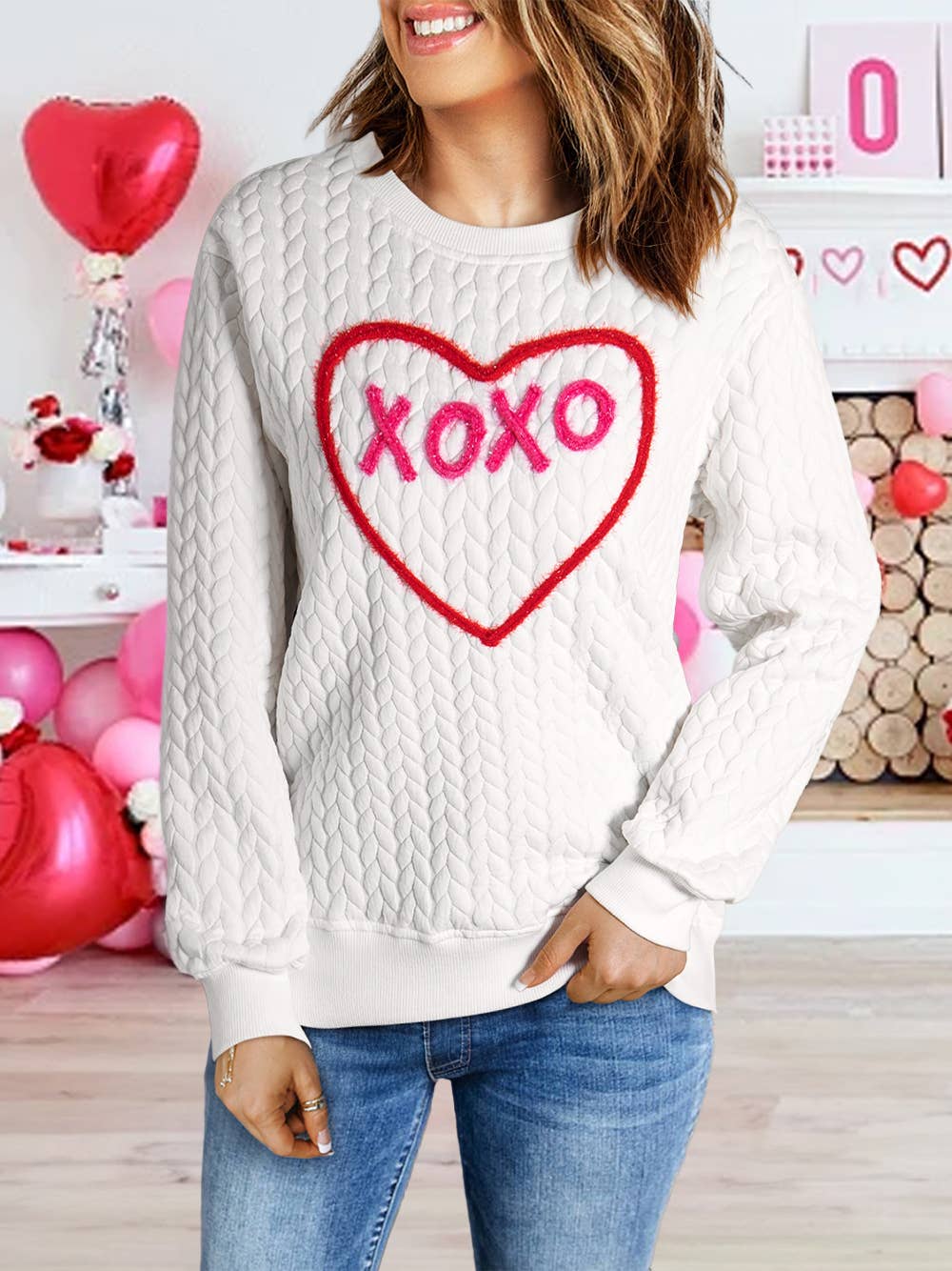 SWEATSHIRT: Heart XOXO Chenille Embroidered Textured Sweatshirt
