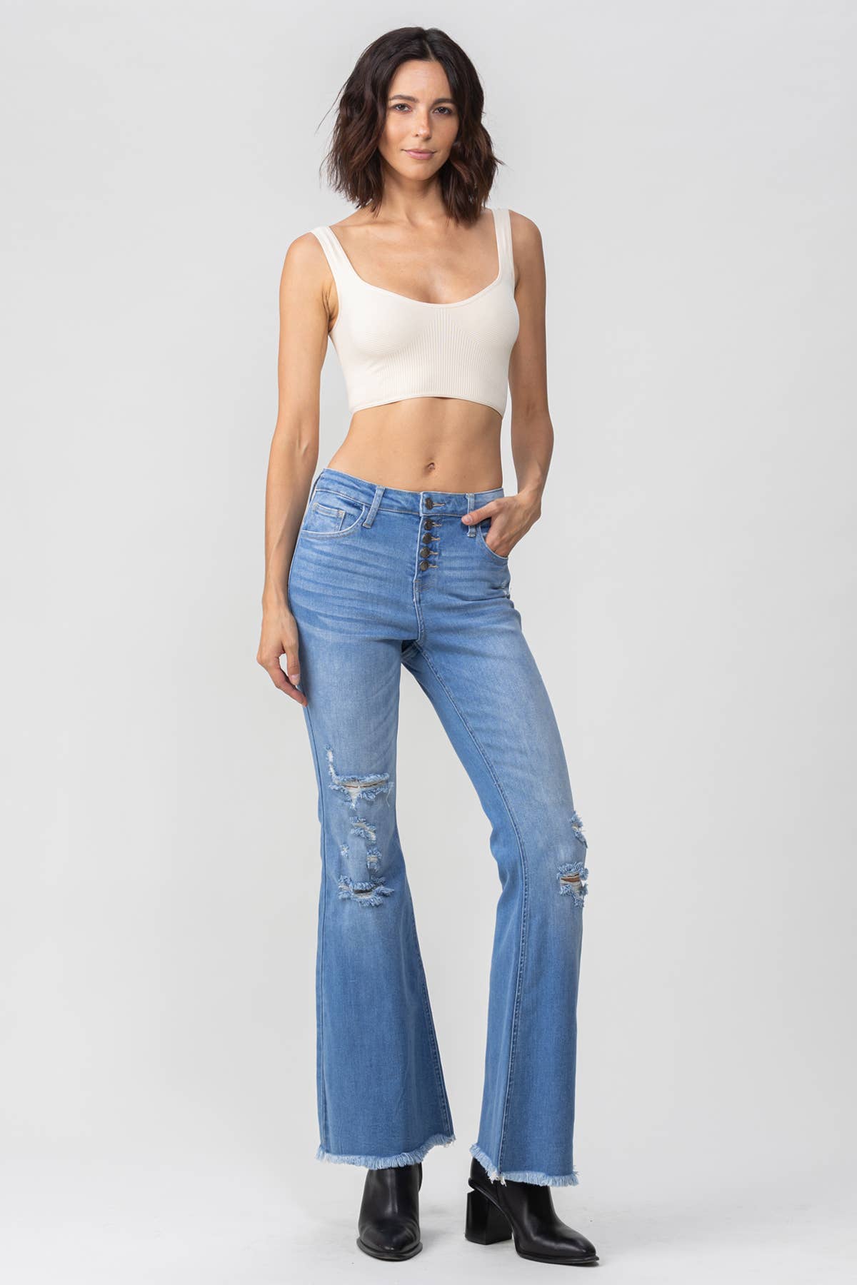 MUST HAVE JEANS: High Rise Exposed Button Flare