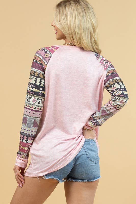 LAST CALL: DAVEY GEO PRINT RAGLAN BABY FRENCH TERRY TOP