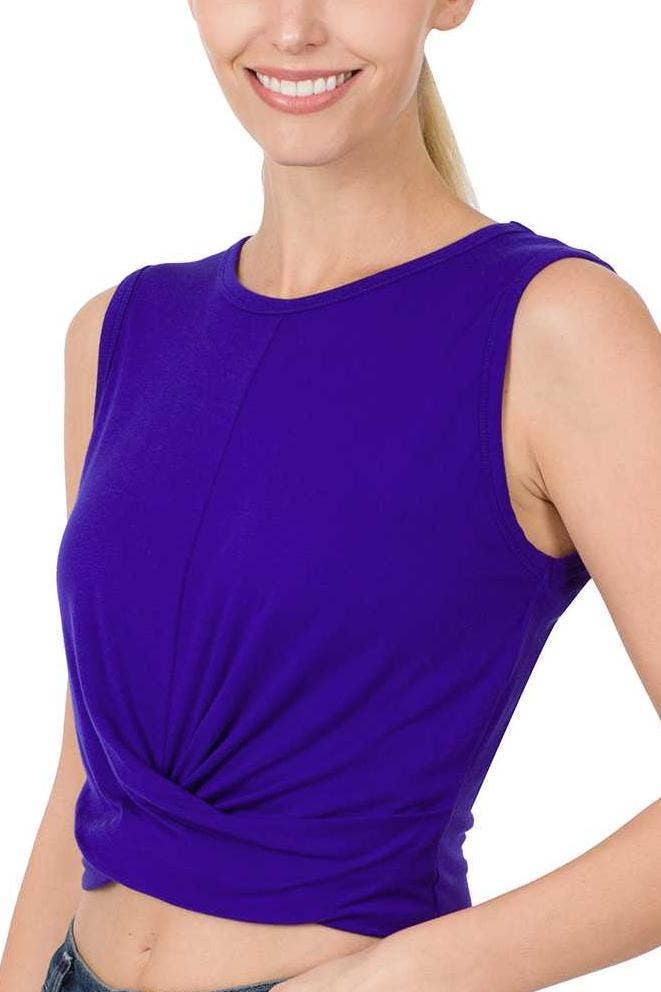 ALL TOPS: Luxe Rayon Twist Front Sleeveless Crop Top