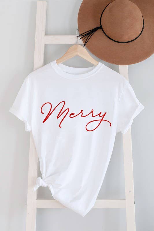 GRAPHIC TEE: Merry, Cursive, Christmas, Unisex Round Neck T-Shirt