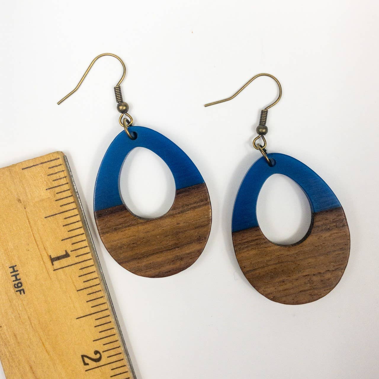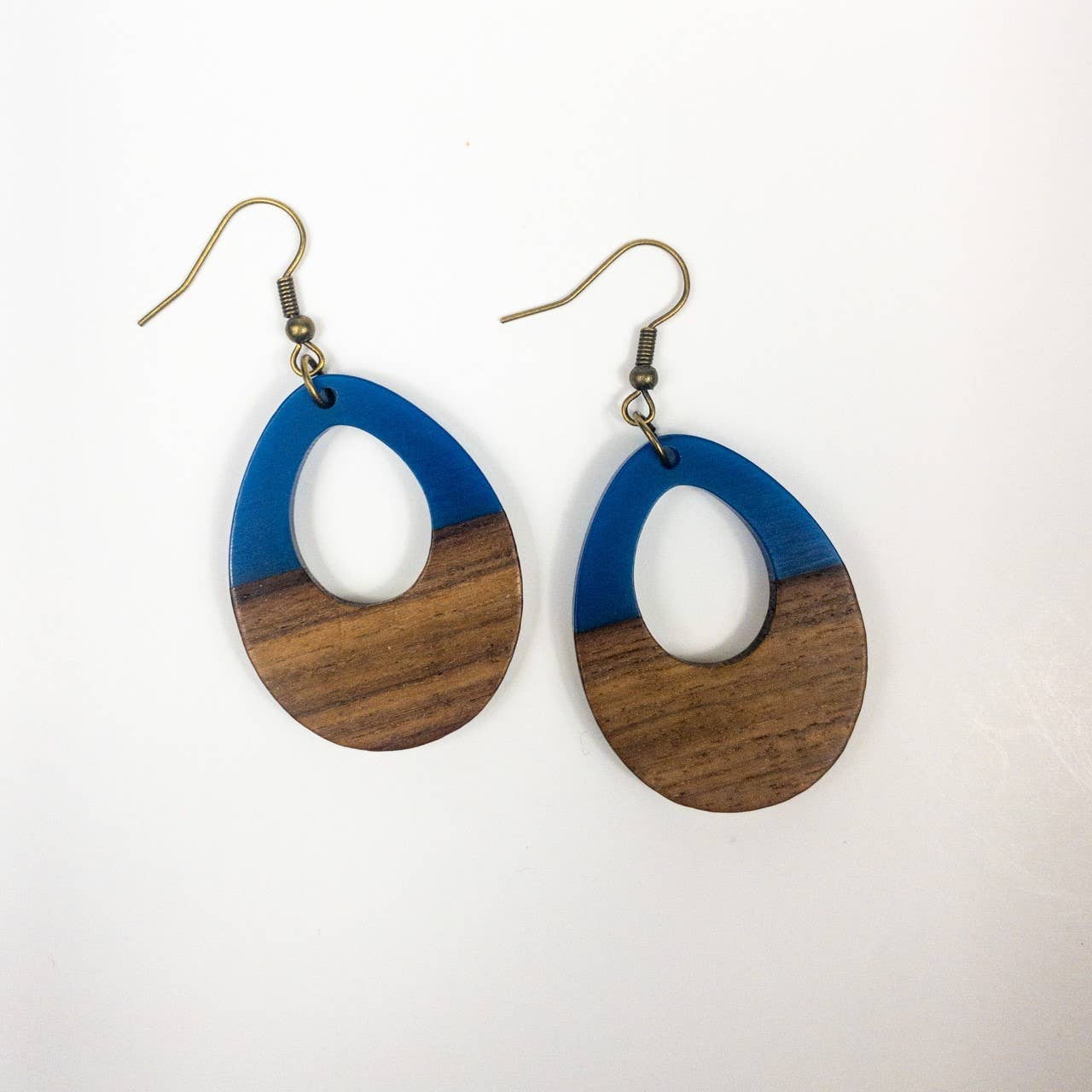 JEWELRY: Navy Blue Hollow Tear Earrings Boho Wood Resin Dangle Drop