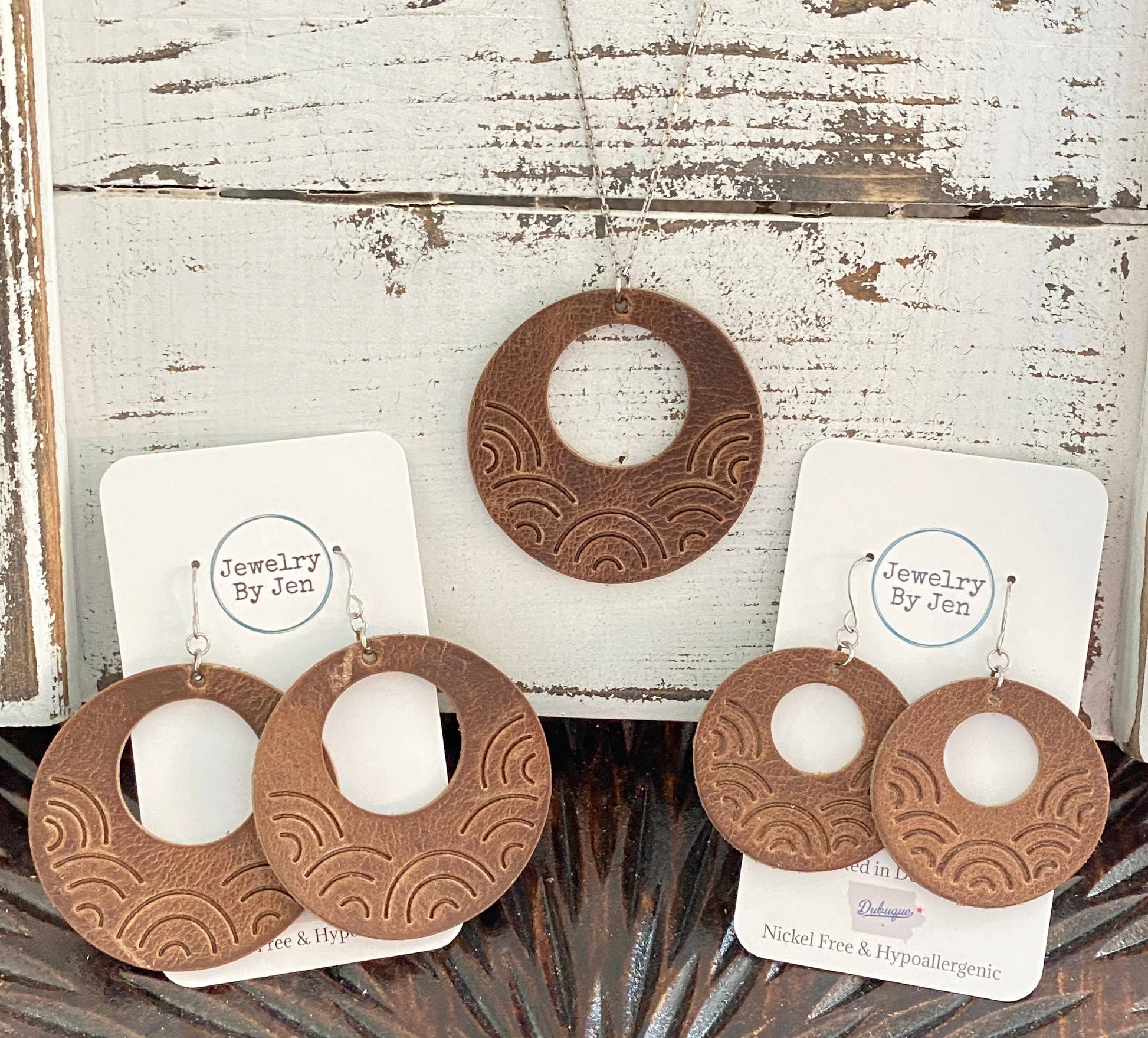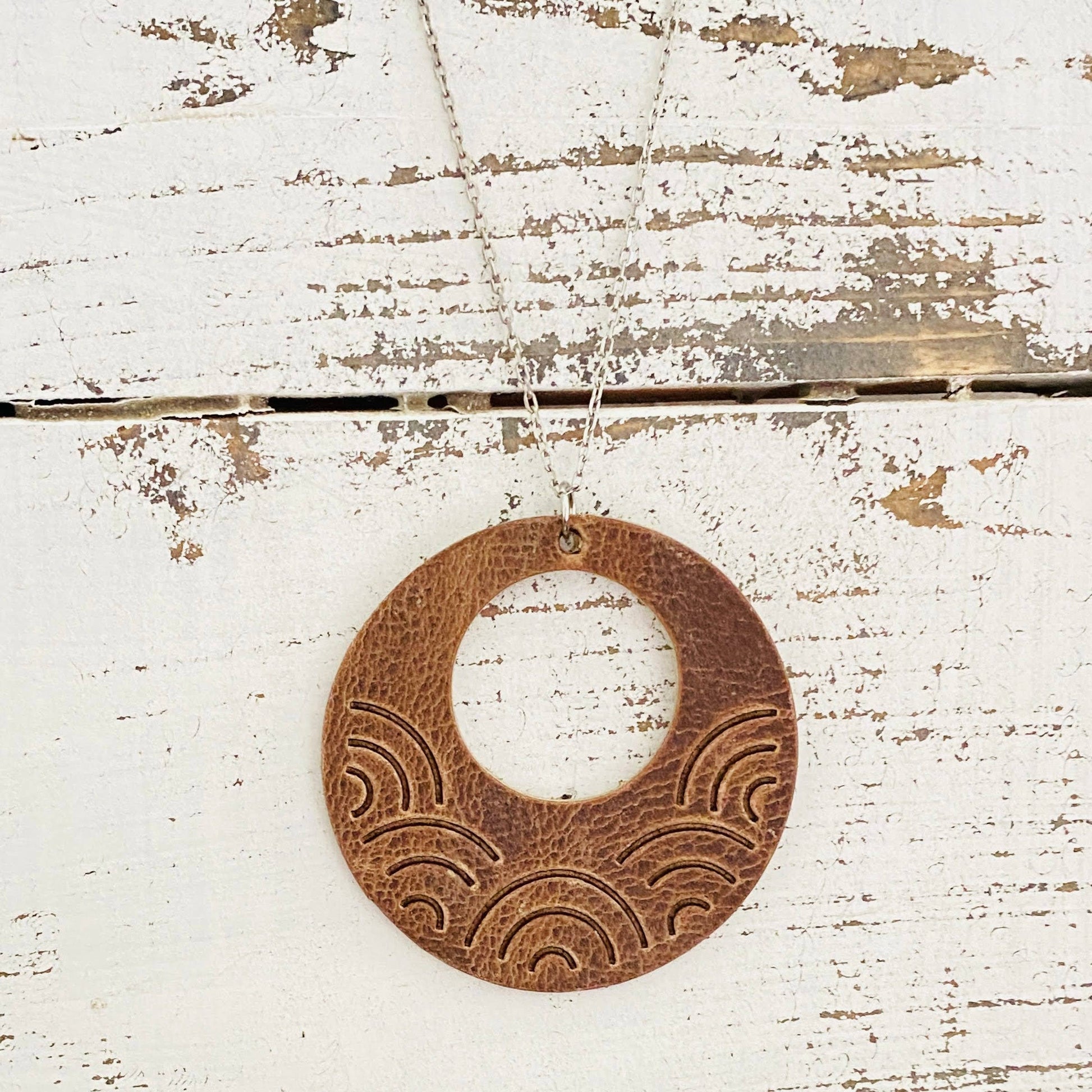 JEWELRY: Embossed Large Rainbow Circle Vintage Cowboy Brown
