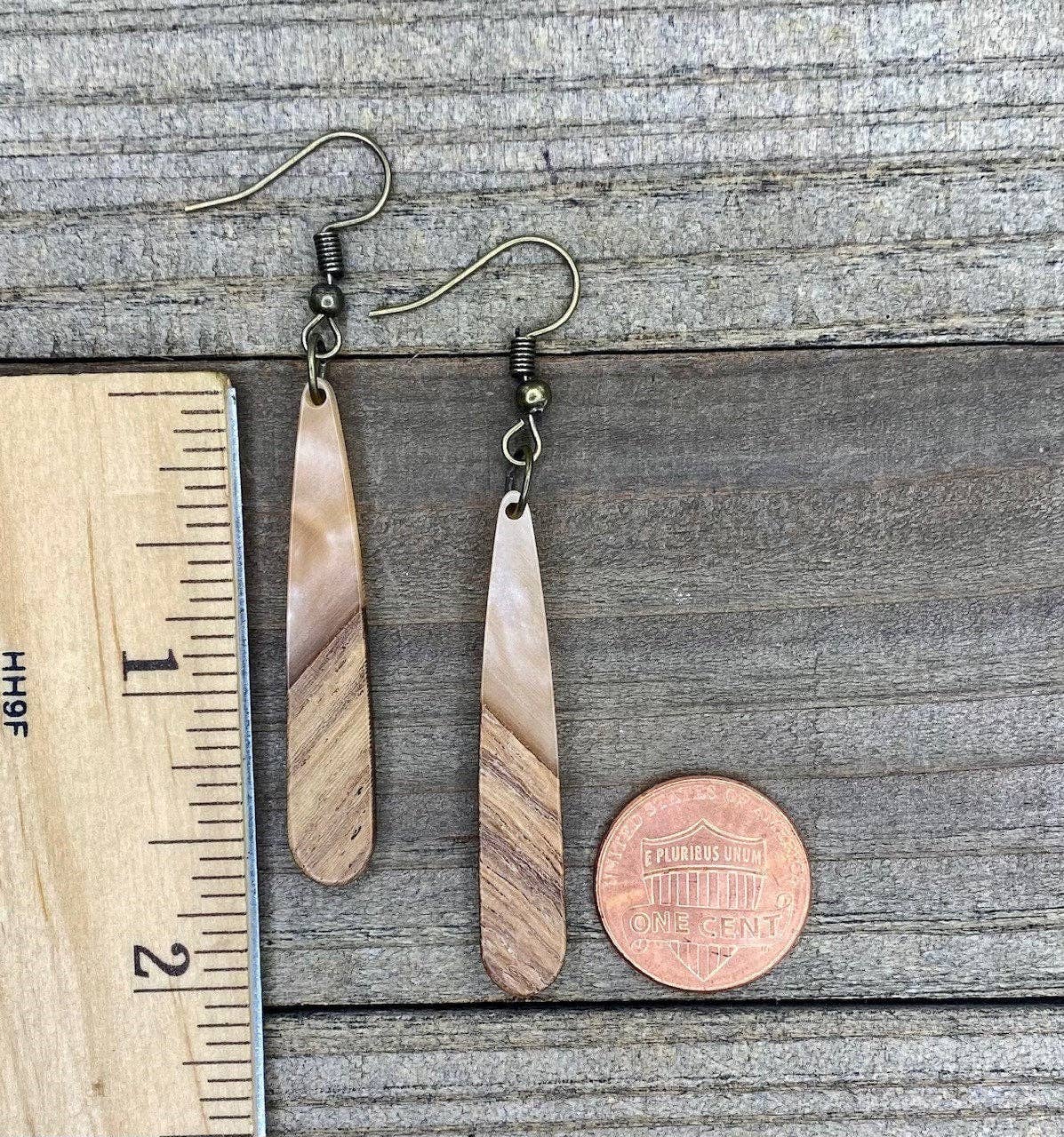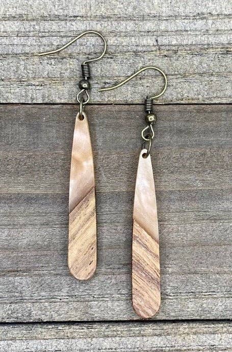 JEWELRY: Pearly Pink Long Teardrops | Resin + Wood Bohemian Earrings