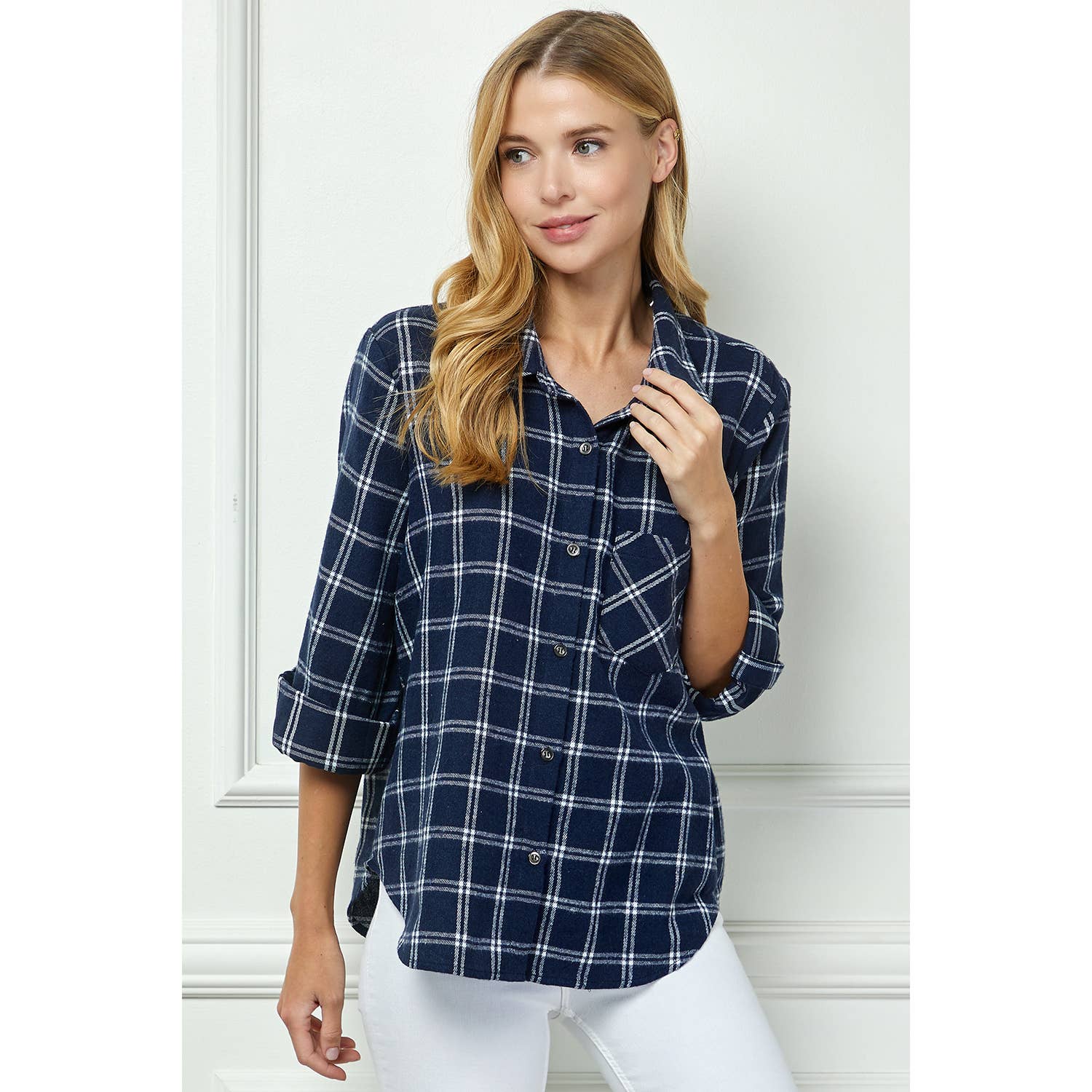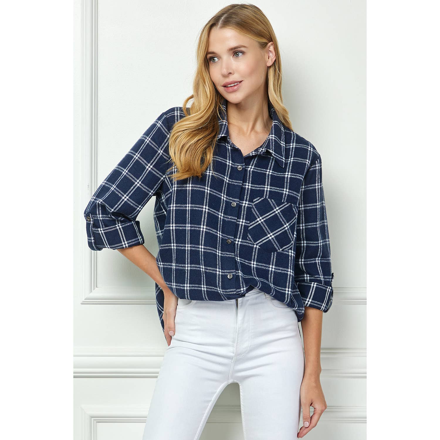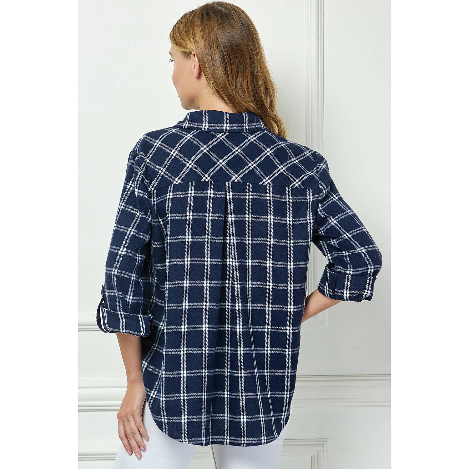 ALL TOPS: PLAID FLANNEL ROLL SLEEVES COLLAR NECK SHIRTS