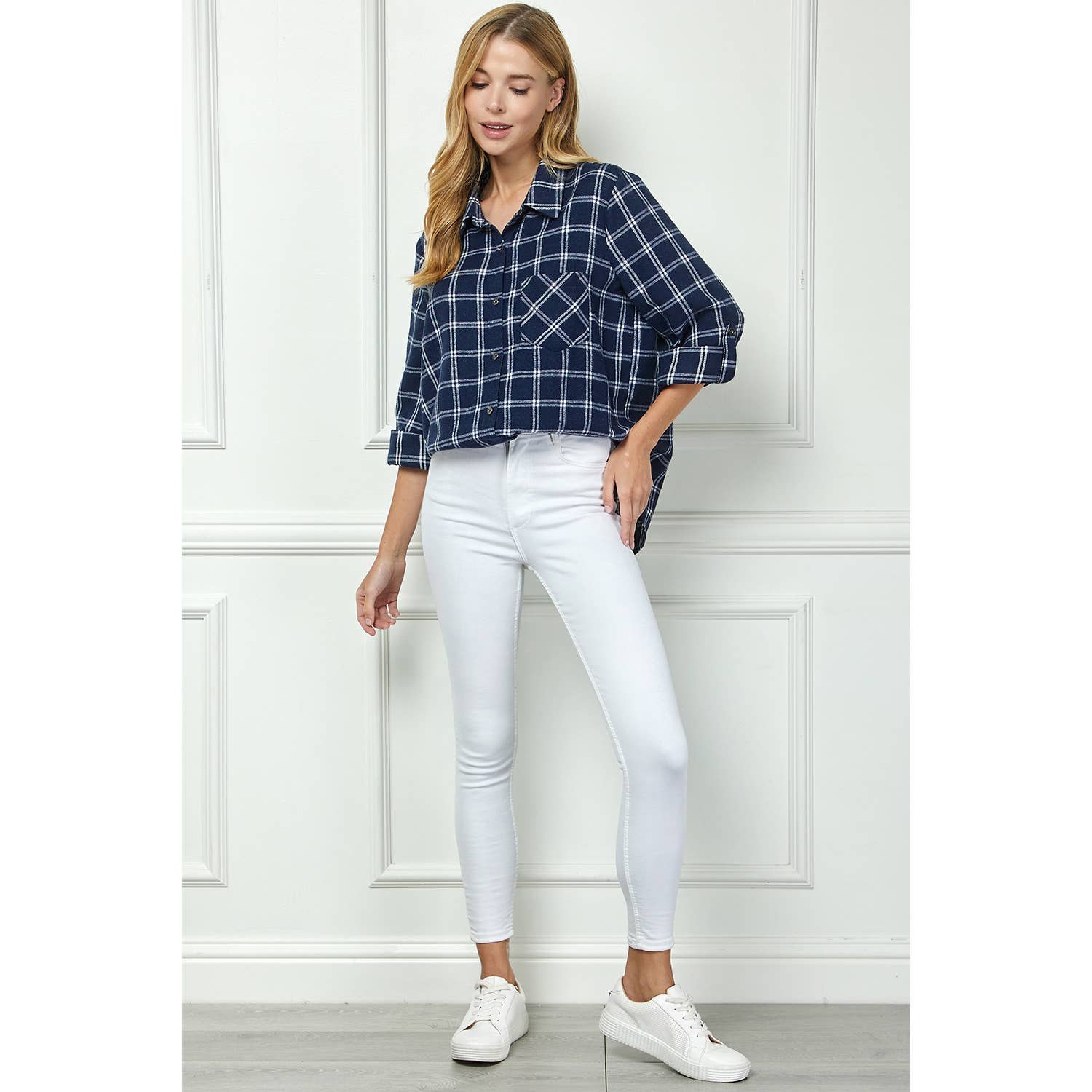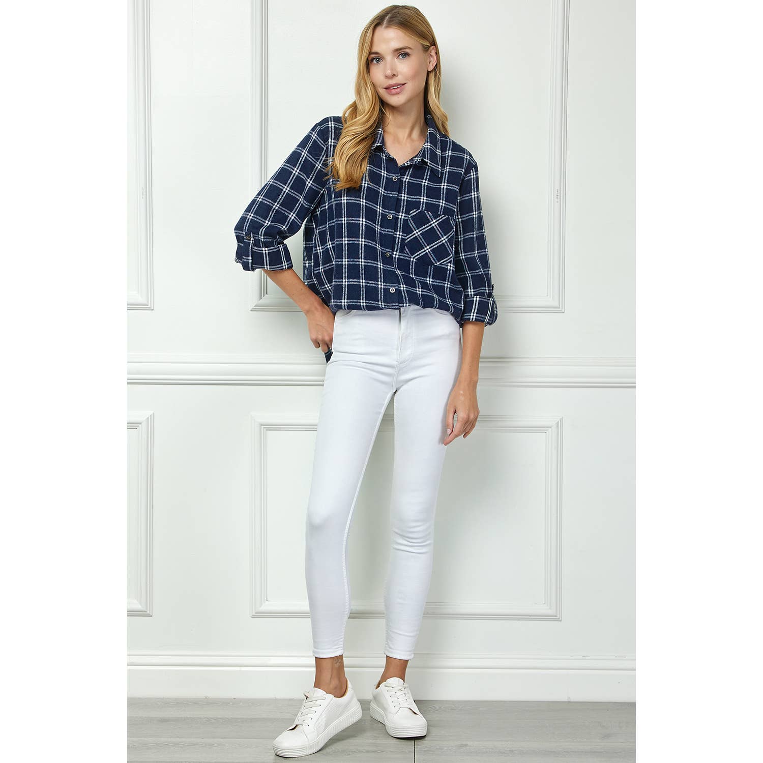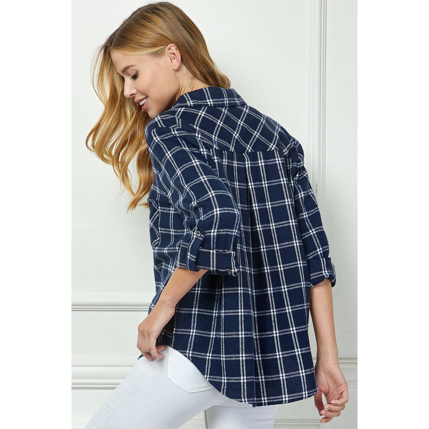 ALL TOPS: PLAID FLANNEL ROLL SLEEVES COLLAR NECK SHIRTS