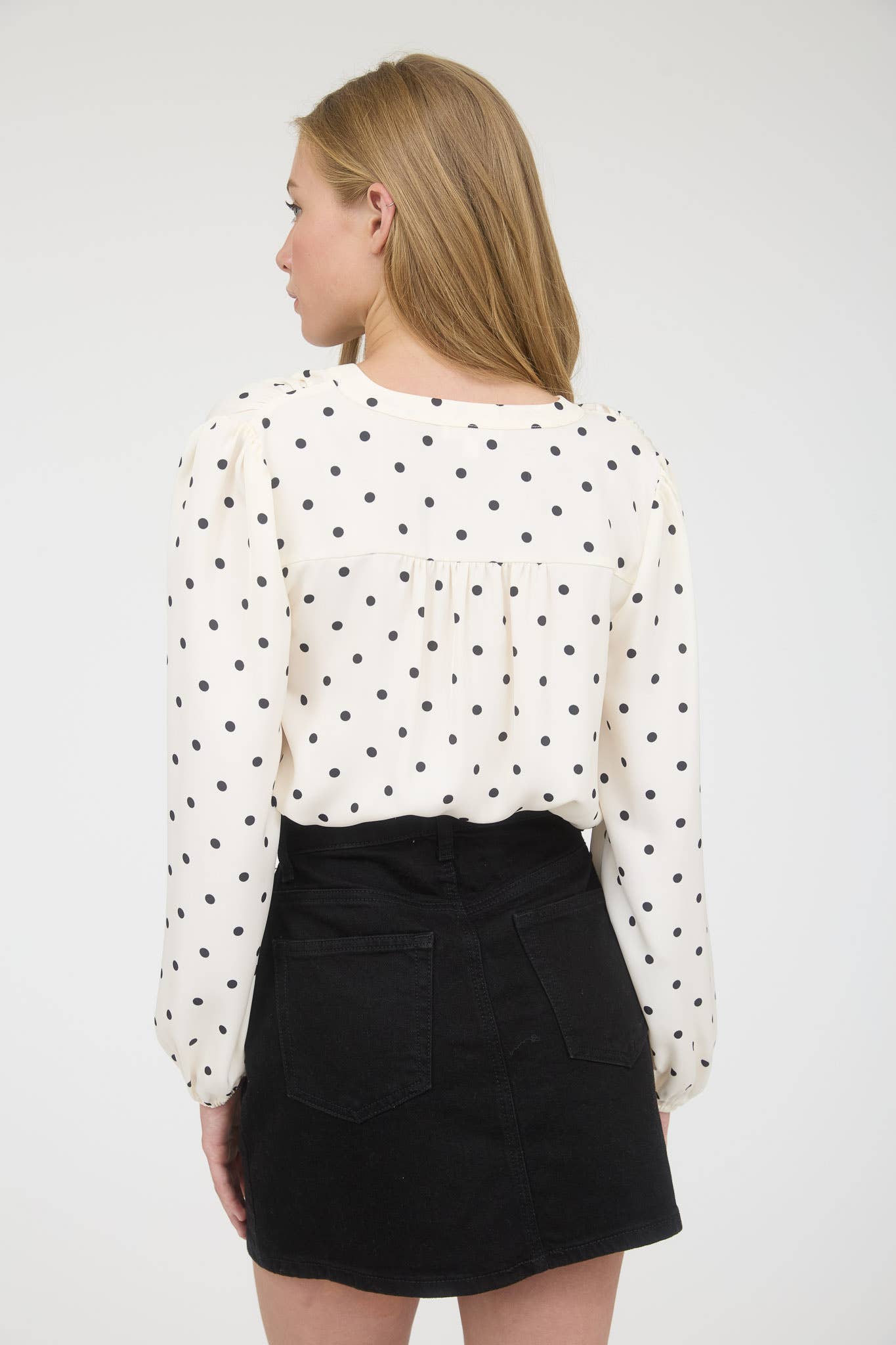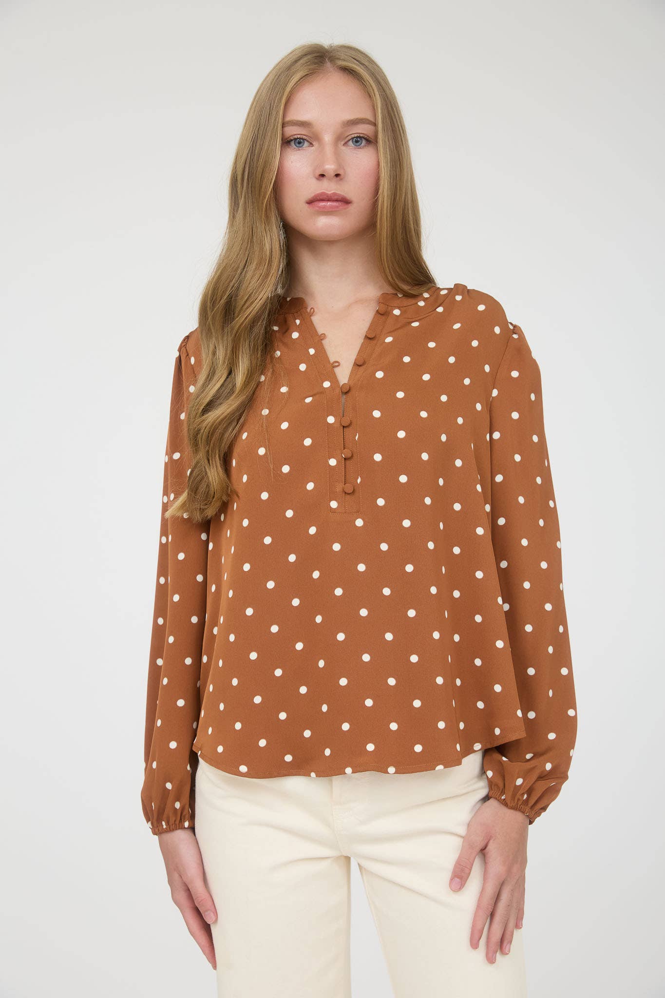 ALL TOPS: POLKA DOT HENLEY LONG SLEEVE BLOUSE