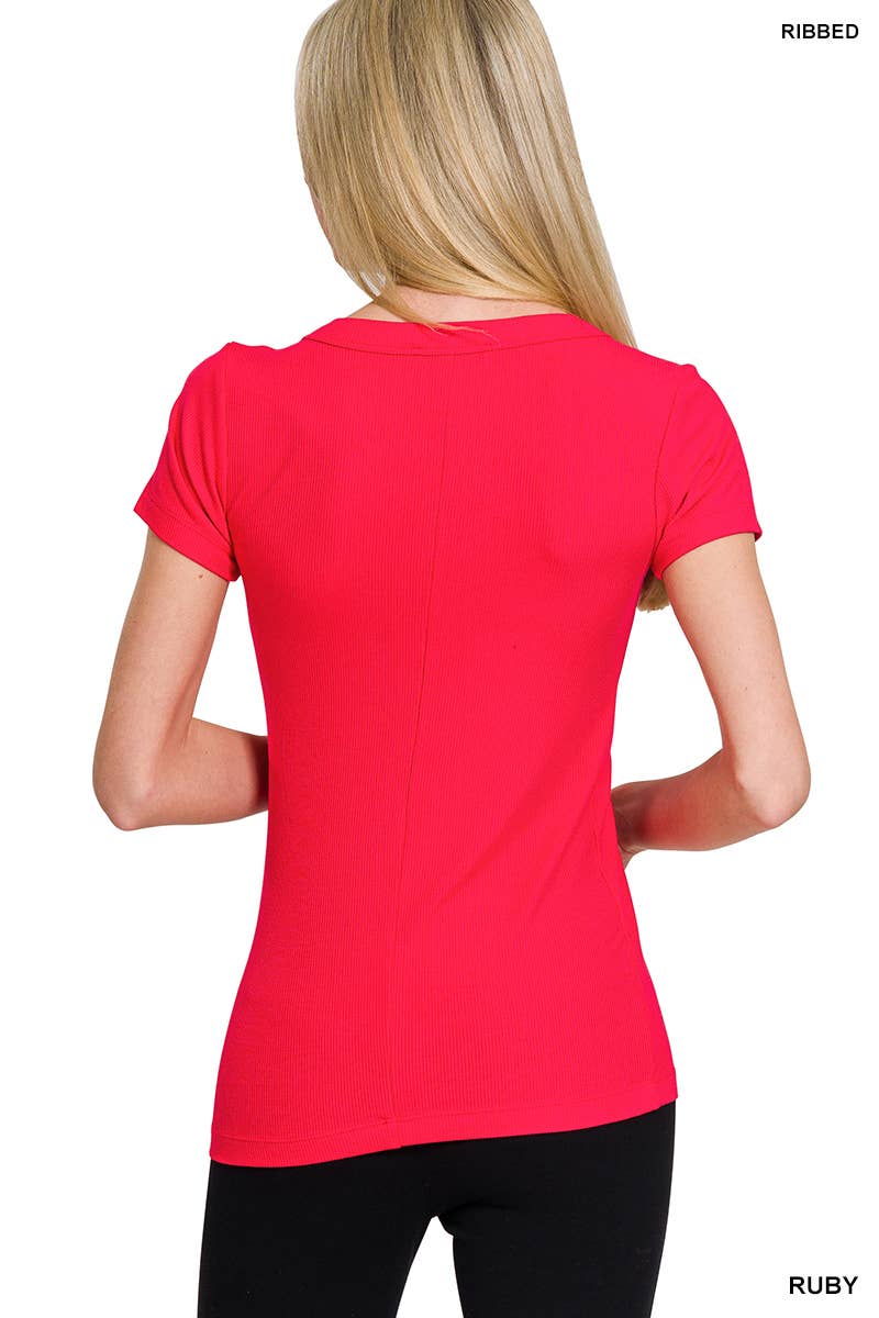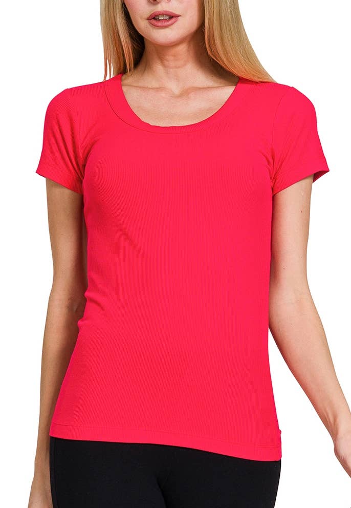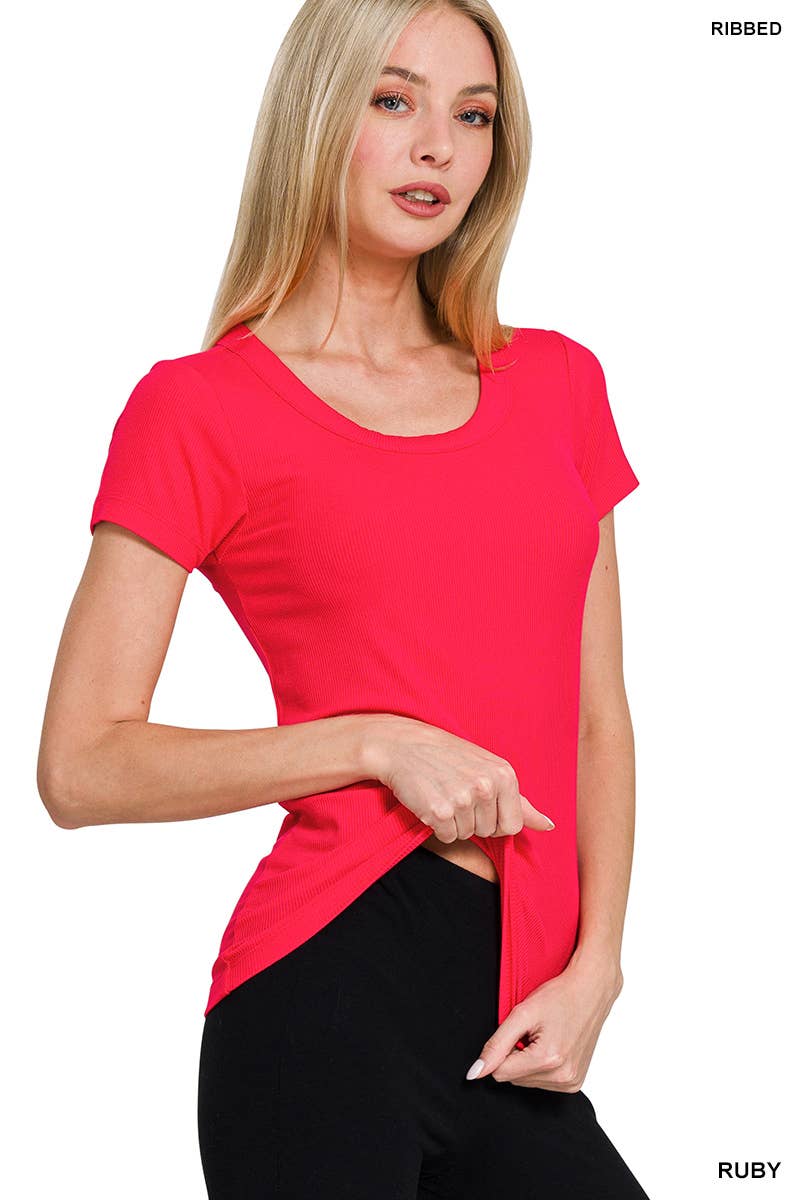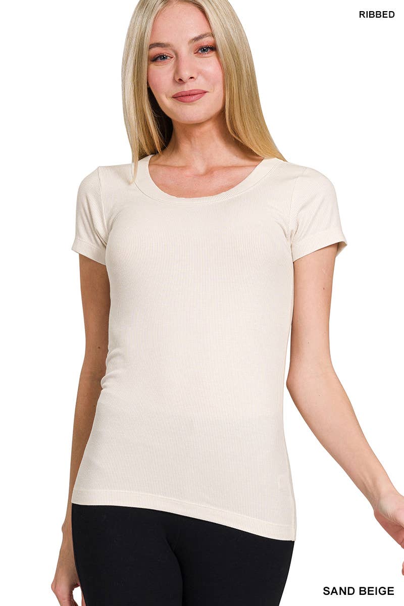 ALL TOPS: Ribbed Round Neck Short Sleeve Tee Shirts