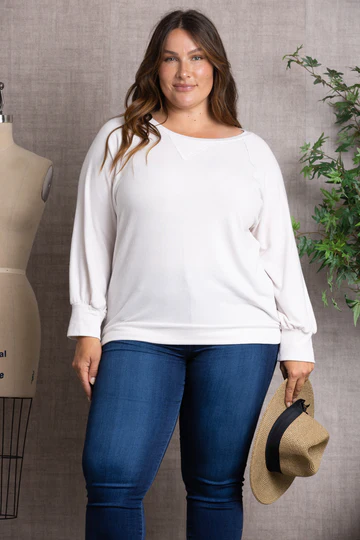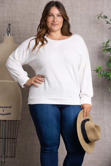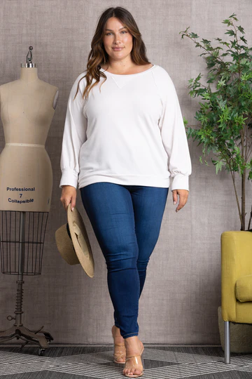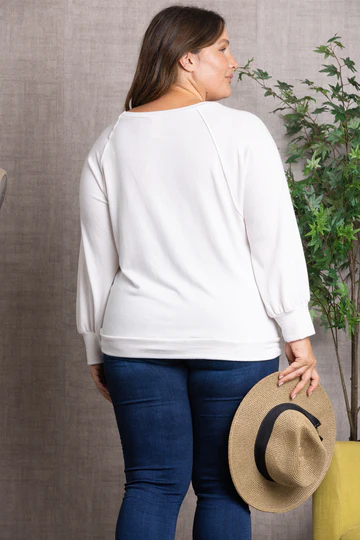 PLUS SWEATSHIRT: SCOOP NECK RAGLAN CUFF LONG SLEEVE KNIT PLUS SIZE TOP