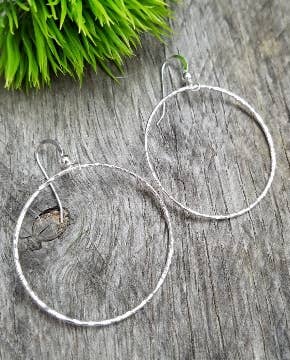 JEWELRY: Silver Large Hammered Round Hoop Earrings