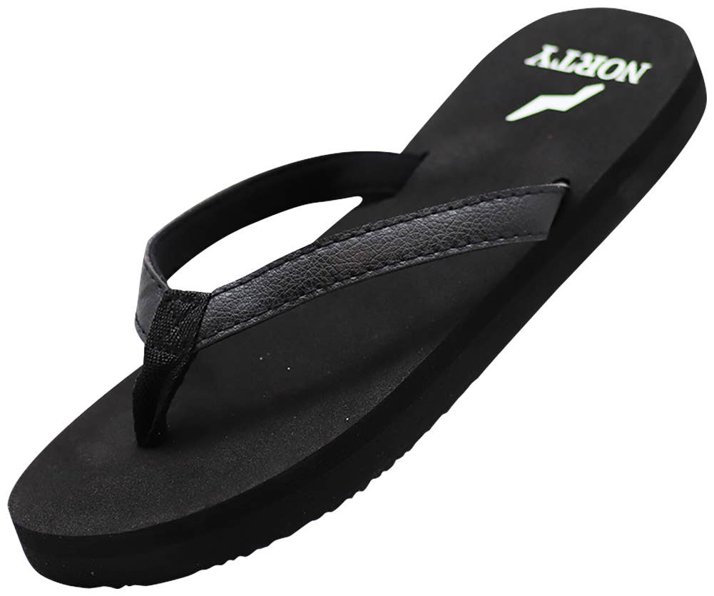 Norty - Women's Flip Flop Thong Sandal, Slip on this fashion forward sandal and you are set for the day, Fabric straps in ombre or faux leather, Platform is approximately 3/4 inch high, Cushioned rubber footbed, non skid soutsole, Mand made materials, Made in China