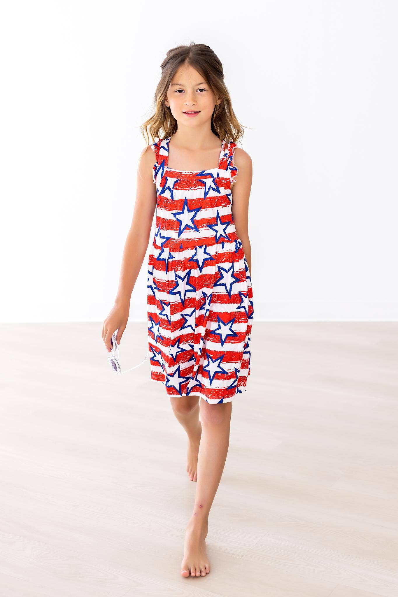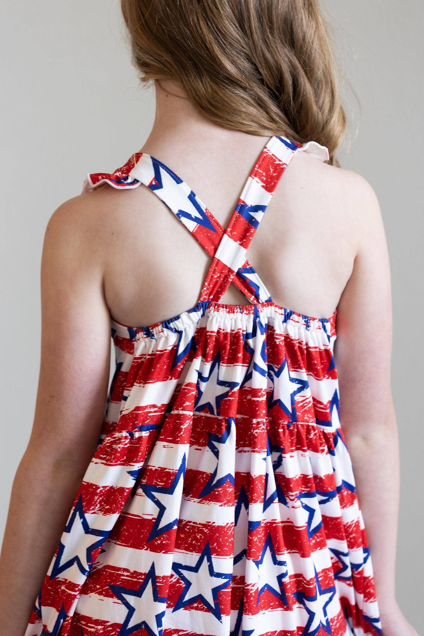 CHILDRENS: Stars & Stripes Ruffle Cross Back Dress