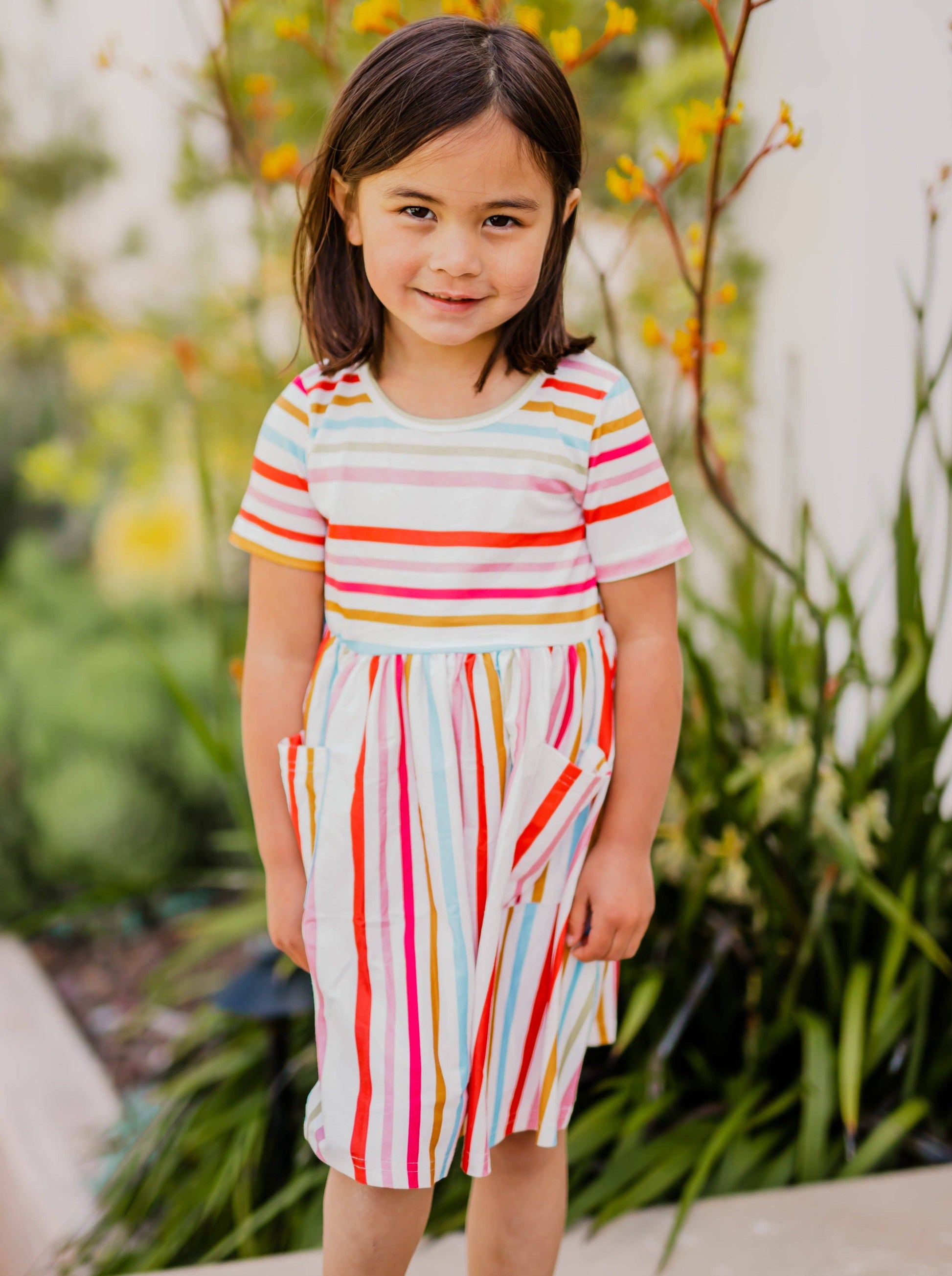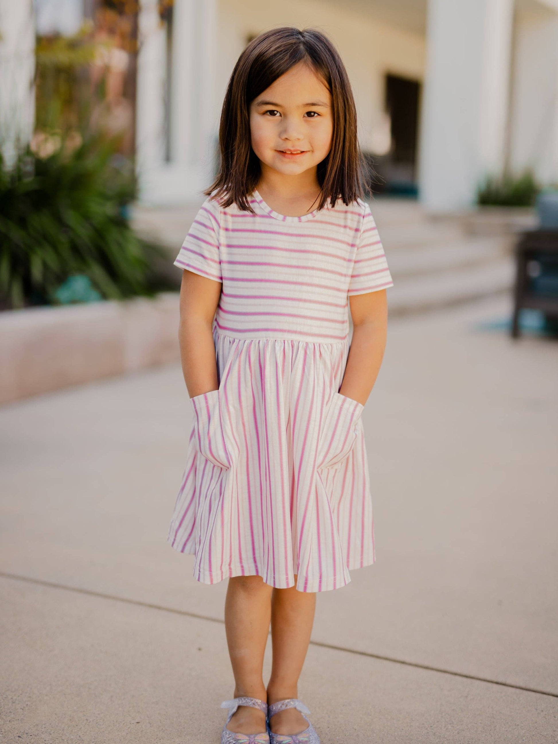 CHILDRENS: Striped Pocket Little Girls Dress
