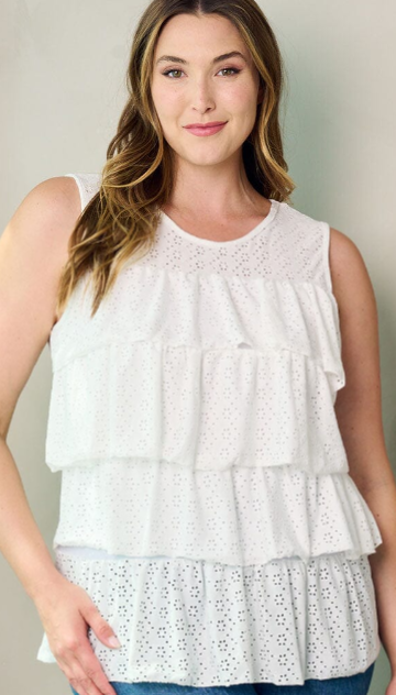 PLUS TOPS: SIZE SLEEVELESS RUFFLE EYELET DETAILED TANK TOP