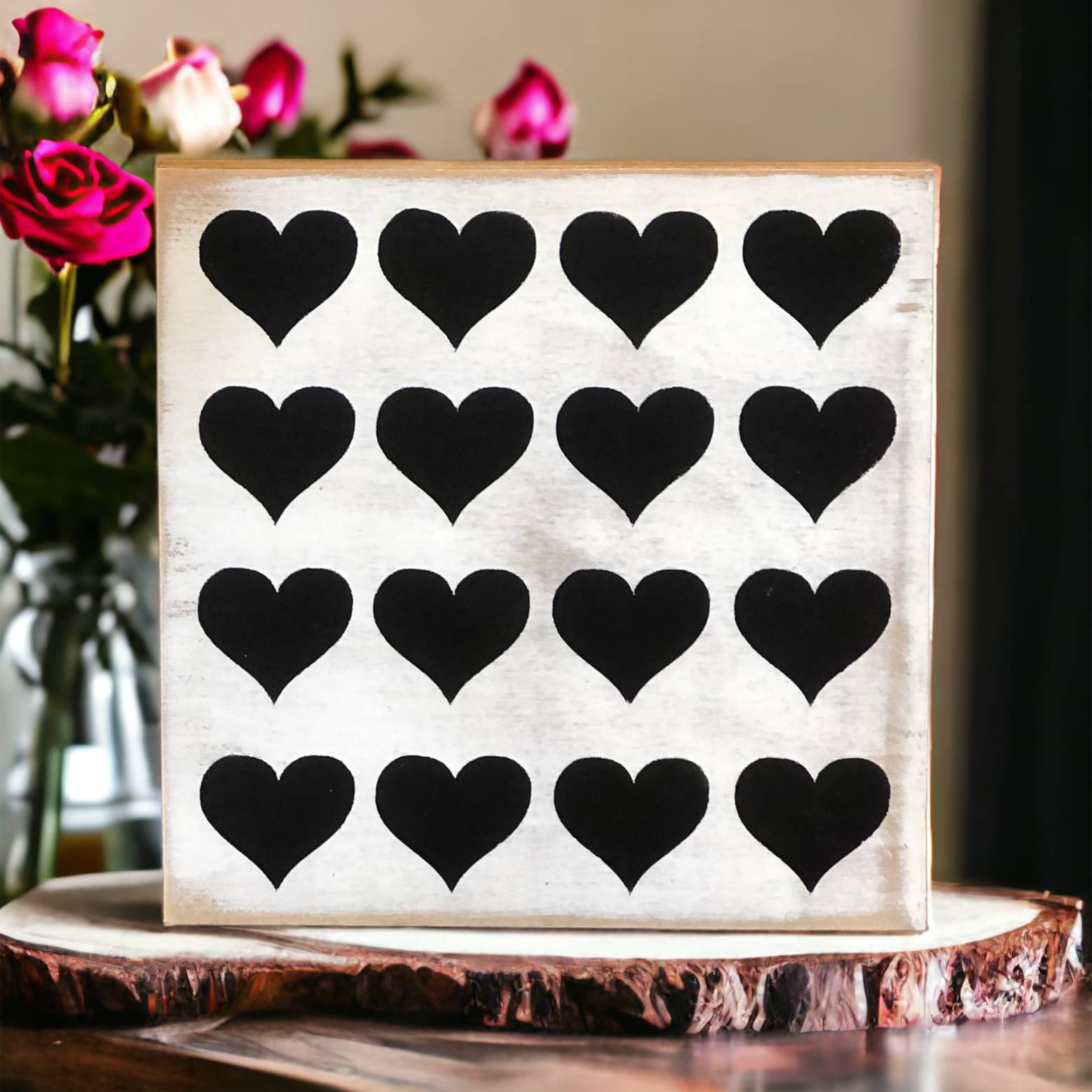 The finish of this shelf sitter makes it perfect for Valentine's Day or year round. All of our signs are handmade in the USA on 3/4" plywood with finished back. Due to the artistry of painting and distressing, no two signs will be exactly the same.