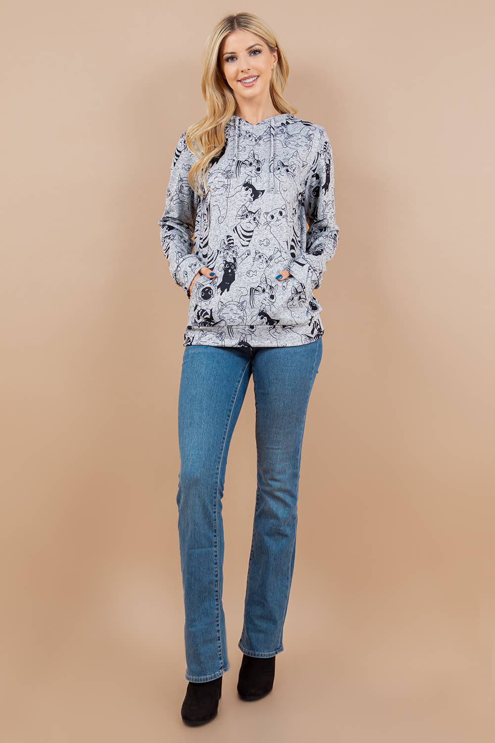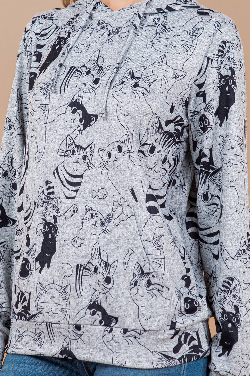Variety Cat Print Soft Sweater Knit Pullover Hoodie