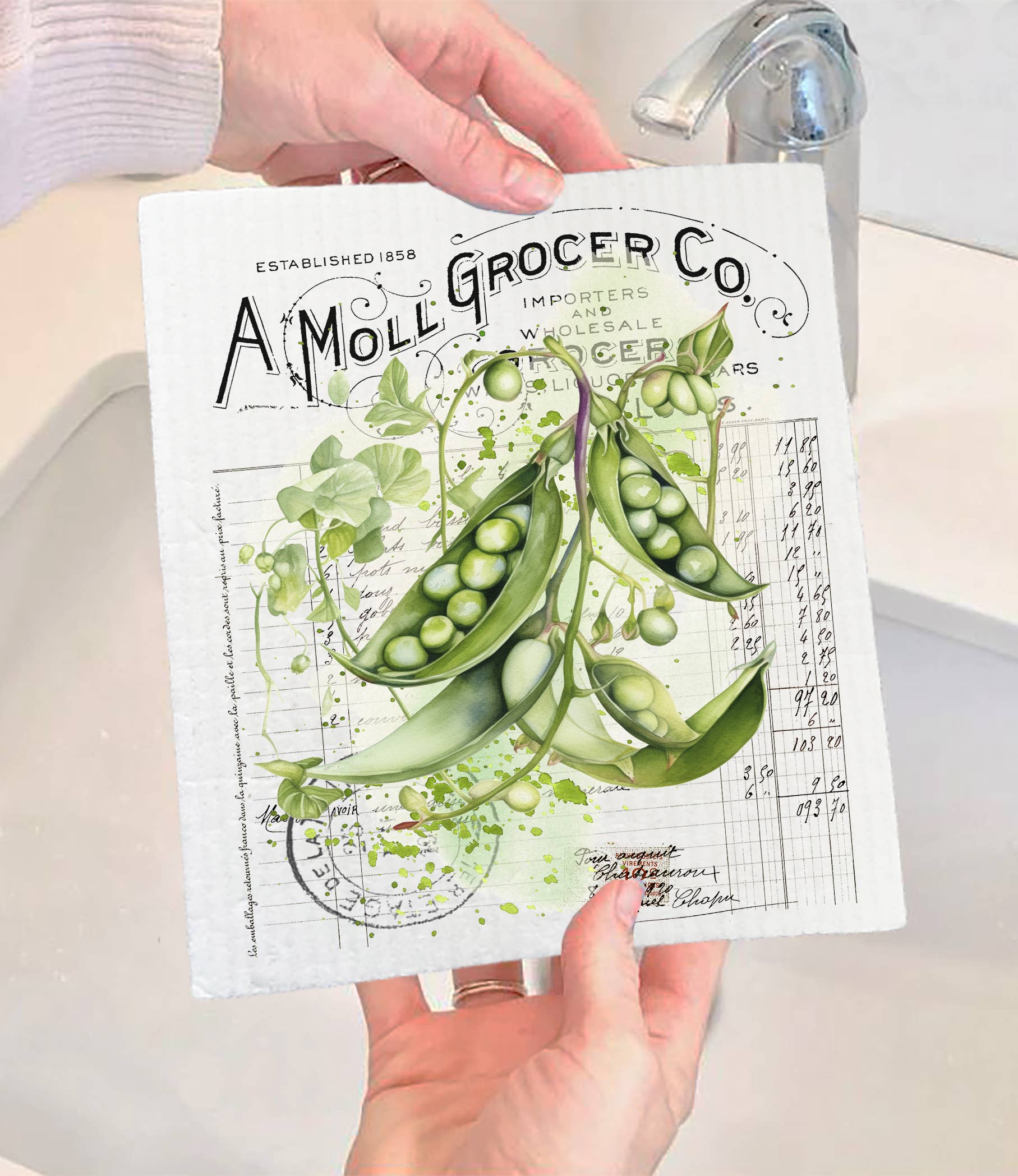 HOME: Swedish Dishcloth Vintage Farmhouse Peas Pods Vegetables SWEDISH DISH CLOTH