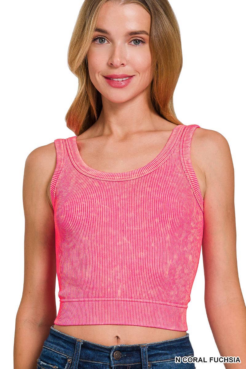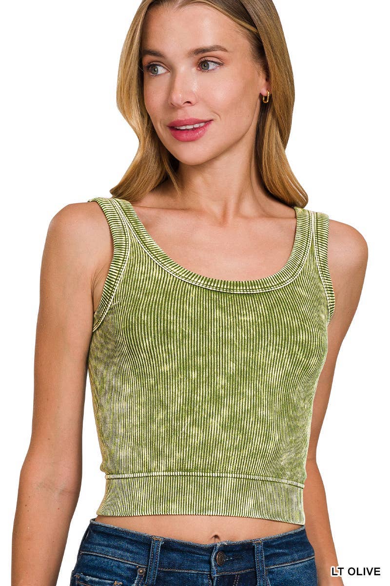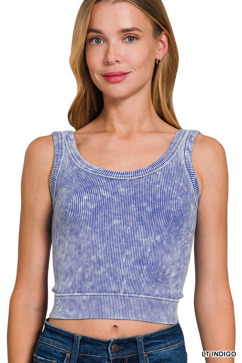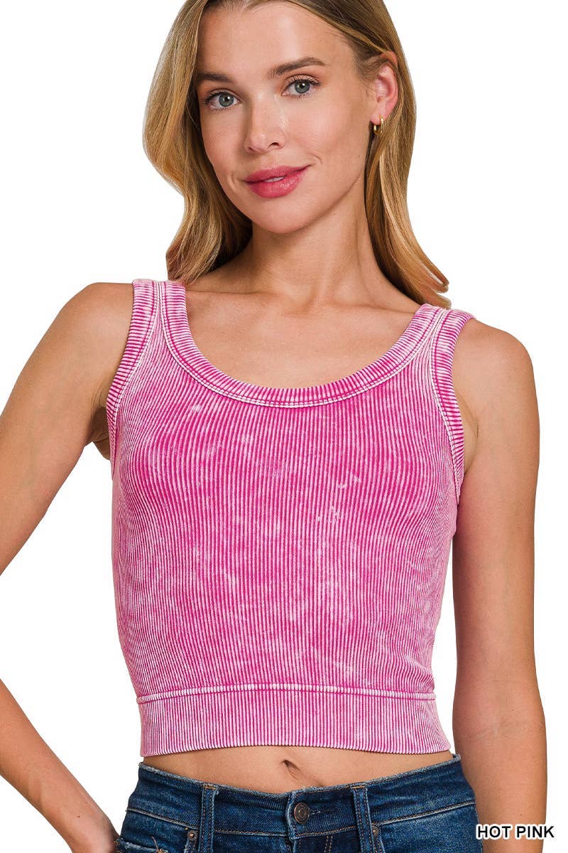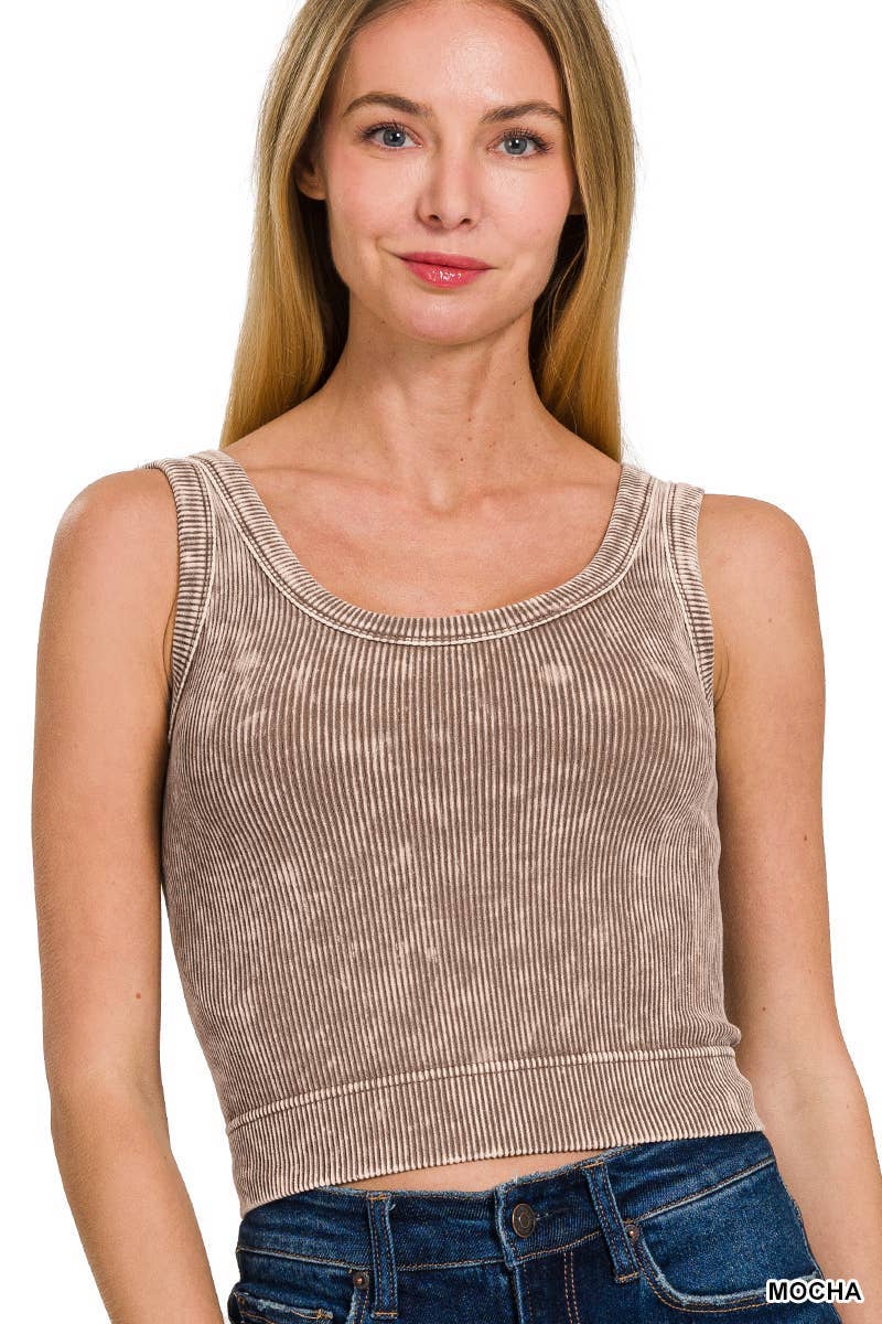 ALL TOPS: Washed Ribbed Cropped Seamless Scoop Neck Tank Top